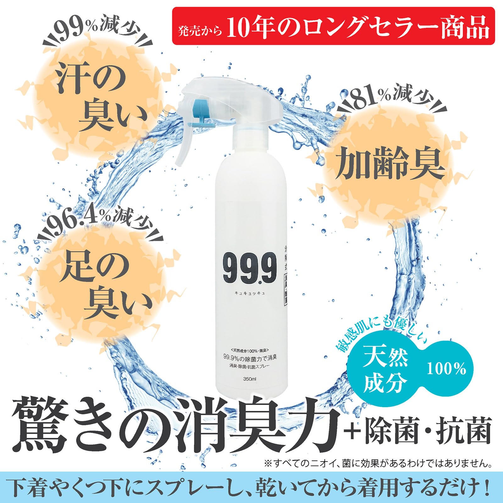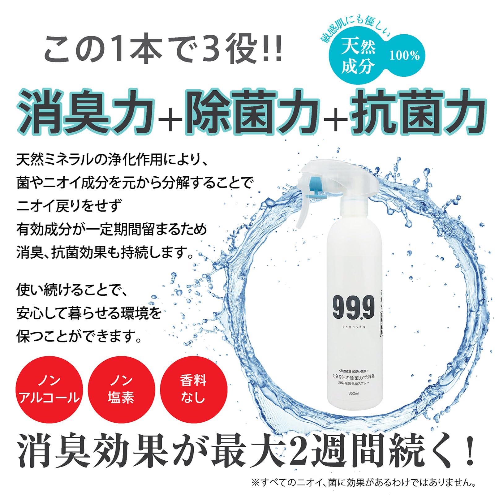 【天然成分100%でもニオイが消える無香料の消臭除菌剤】99.9消臭スプレー350ml 除菌しながら消臭するから消えなかったニオイが消える 天然成分100%の無添加 国内生産 臭う前の衣類や靴下 生乾き臭 無香料だからヘルメットにも最適 乾いてからもより効果持続