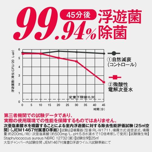 * 有機物に触れた瞬間に対象物を分解し除菌・消臭がはじまります。その後は水に戻りますので自然にも優しいです。本製品はアルコールや薬品、ポリヘキサメチレングアニジン塩酸塩(PHMG)等は一切使用していません。10倍に希釈したジアニストを次亜塩素酸水対応の超音波噴霧器で除菌・消臭が可能です。(噴霧器別売り 分析機関で99.94%除菌効果テスト済み)