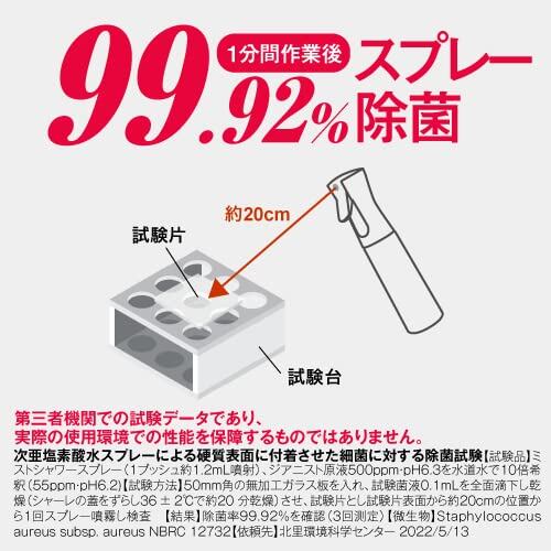 * ○予め対象物の汚れを落として使用してください。○濃度500ppm以上(製造時)○未開封の場合で製造より3ヶ月後500ppm,1年後で300ppm以上保証です。(直射日光のあたらない場所での常温保存の場合)○万が一、製造日より1ケ月以上経過した製品が届いた場合はご連絡ください○雑貨区分の製品の為、消費期限は設けておりません。