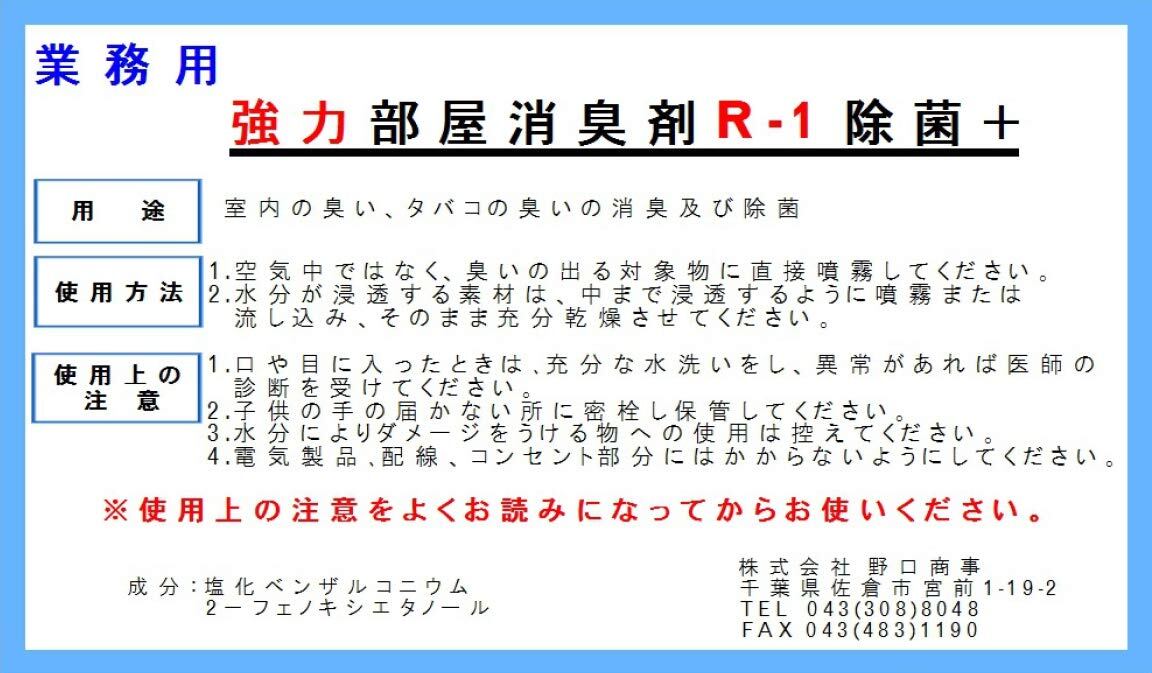 【劇的に消える!】野口商事 強力パワー 消臭剤【部屋用 R-1 スプレー】無香料【消臭をあきらめないで!】500ml