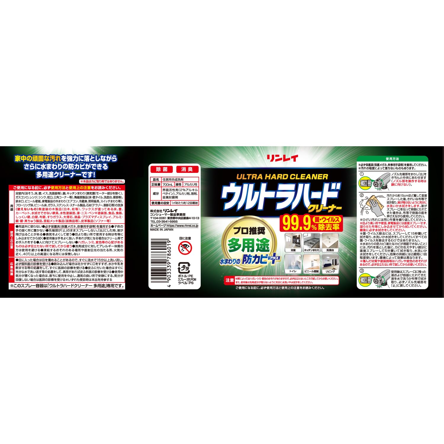 リンレイウルトラハードクリーナー多用途用700ml キッチン リビング 浴室 防カビ 掃除 強力洗剤