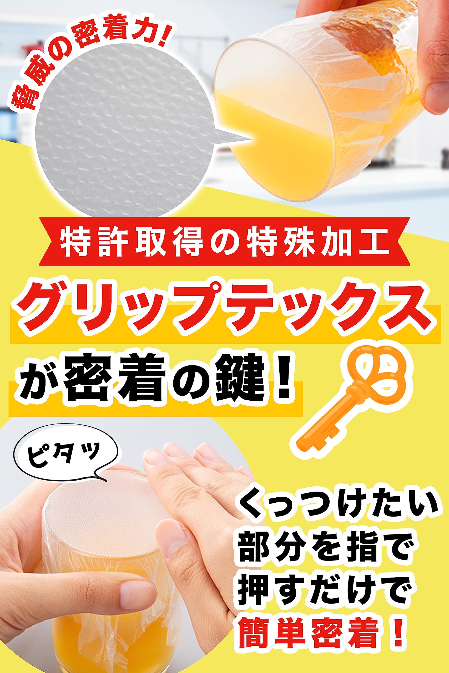 * 【様々な素材に密着する】gladのラップ「プレスンシール(プレスアンドシール)」は、吸着力に優れていて、様々な素材に密着します。木製容器・紙皿や紙コップなどにもしっかりと密着します。保存容器を選ぶ必要がなくとても便利です。また、電子レンジの使用も可能なので、蜜蝋ラップをお使いの方にもおすすめです。