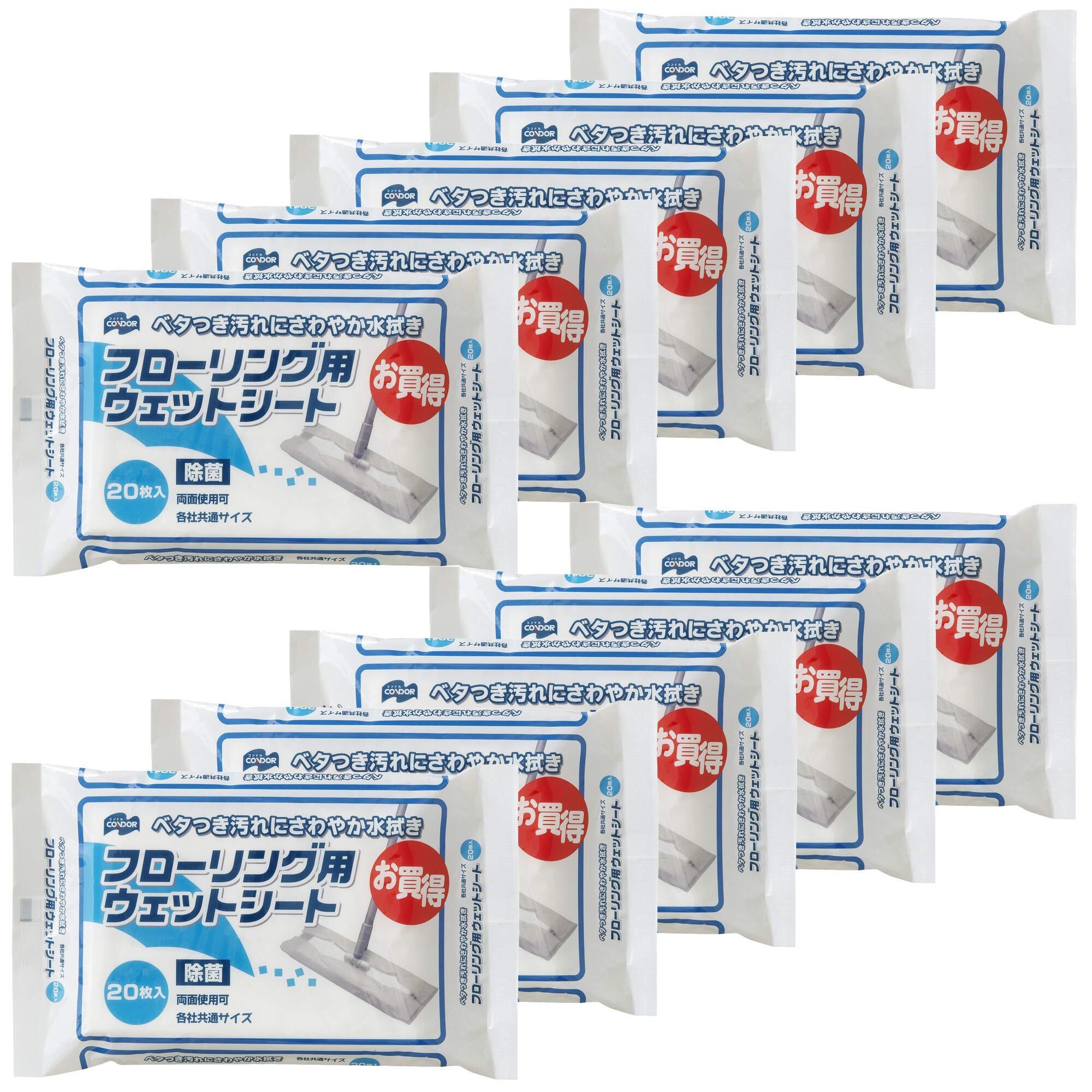 山崎産業(Yamazaki Sangyo) フローリング用 ウェットシート まとめ買いセット 20枚入x10袋 合計200枚 169979