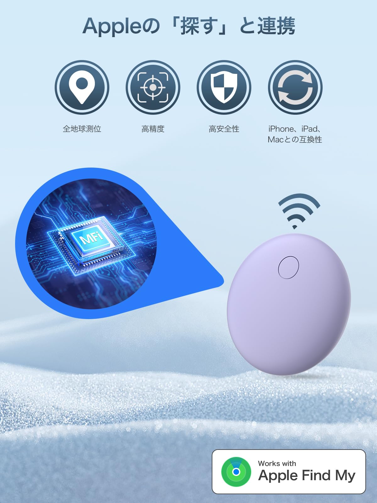 * 【防水性・防塵性】:位置情報タグは「IP68」という高防水性を持っていて、雨の日や砂日の悪条件でも安心して使えます。砂や埃が付いたらやさしく水洗いすることもできるので、いつもキレイでピカピカな状態に保ちます。MFi認証済みの正規商品で、ご安心使用いただけます。