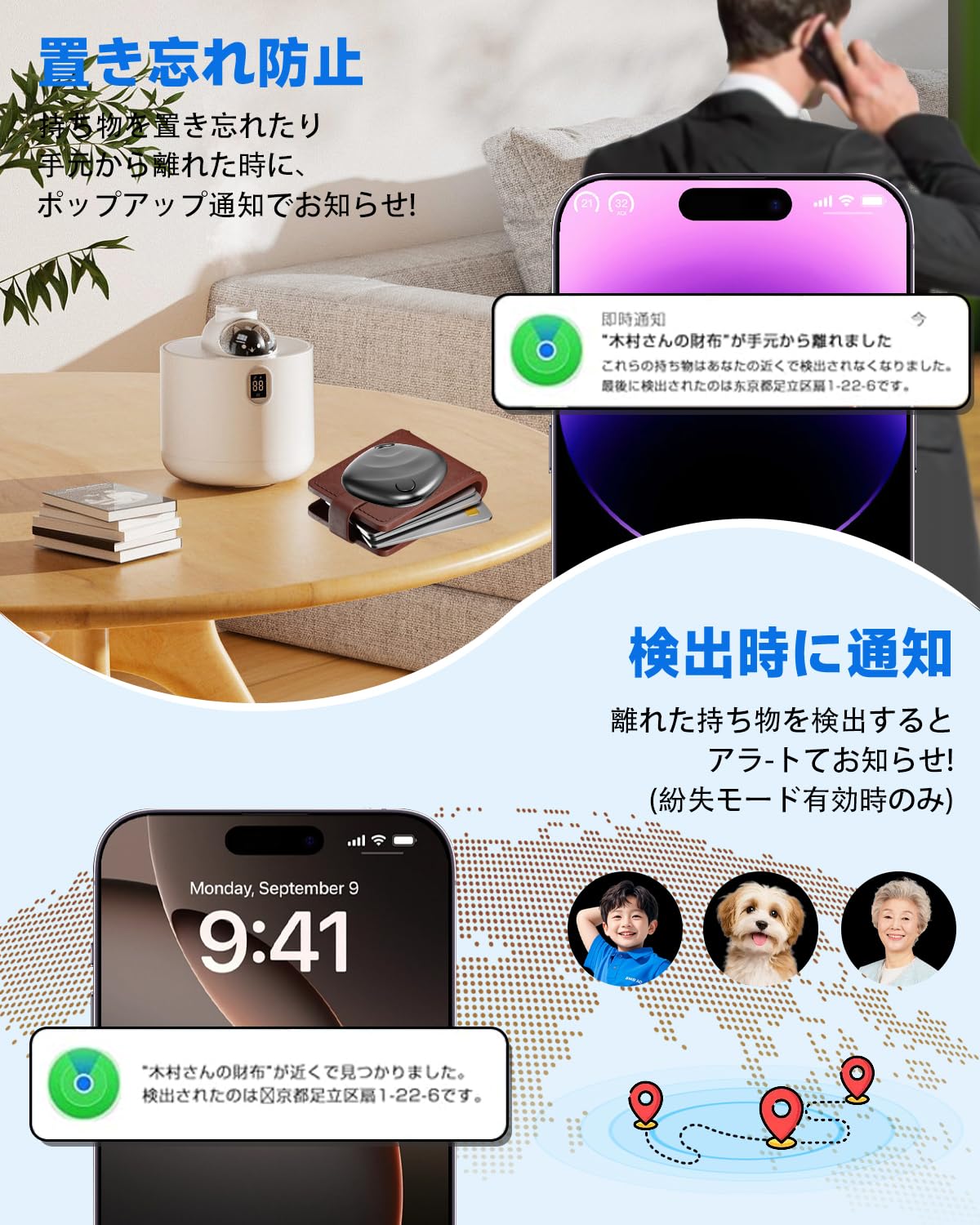 * 【紛失を未然に防ぐ】ソファの隙間やバッグの奥底など、「確かにここにあるはずなのに…」というイライラを解消。Bluetooth範囲内、iPhoneの「探す」アプリから簡単に音を鳴らせます。内蔵スピーカーは、日常の生活音の中でも確実に聞き取れるクリアで大きな音を出力。複数の物を同時に探す場合でも、特定のAirTagだけを選択して音を鳴らせるため便利。近距離での手軽な発見を強力にサポートする、実用的な機能です。