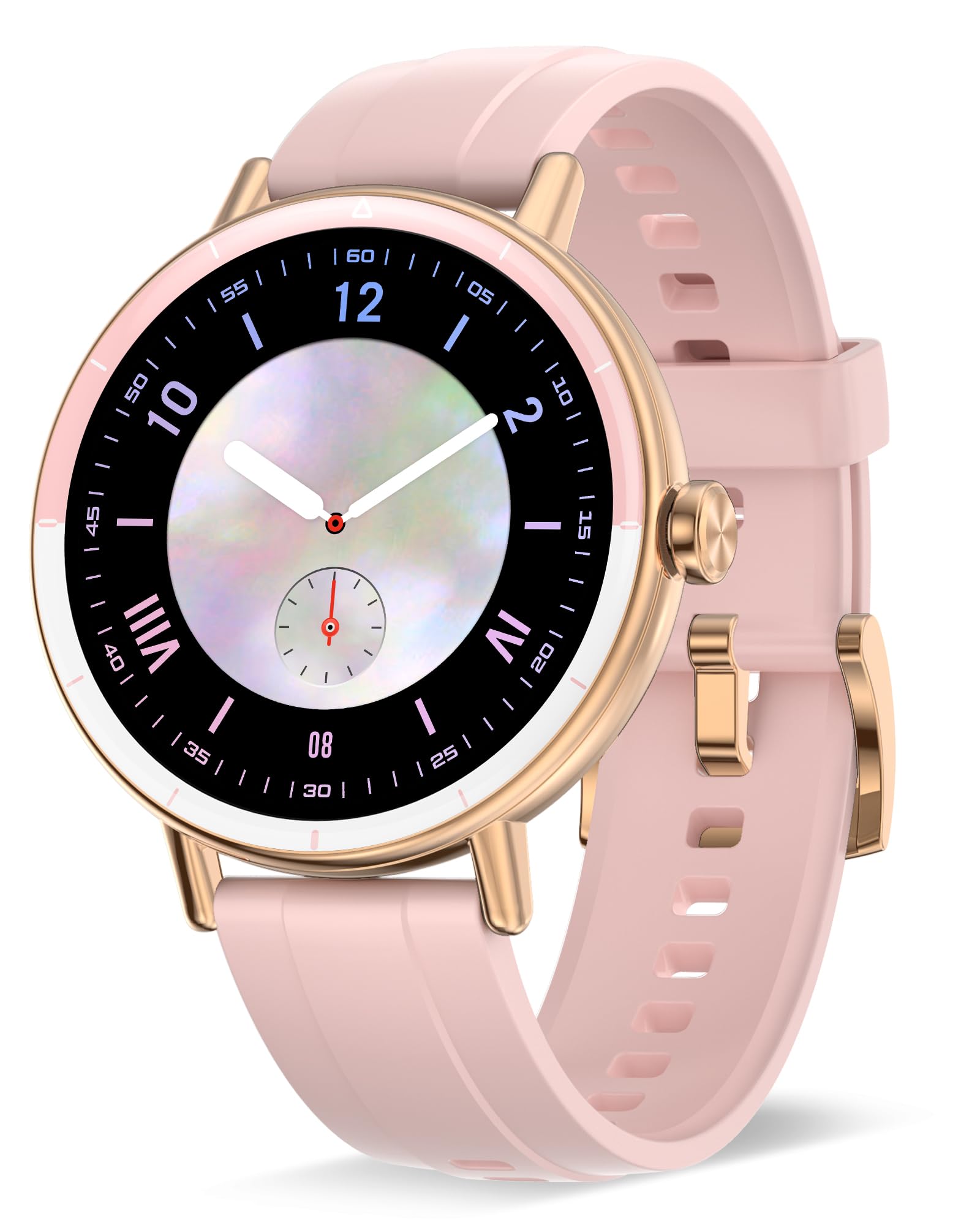 * 【レディース向けのおしゃれ設計・女性の生理周期管理】スマートウォッチ は小さな手首にもぴったりフィットするコンパクトな丸型デザインで、可愛さと機能性を両立。高解像度1.27インチディスプレイは、日差しの下でも視認性が高く、毎日身に着けたくなる美しさ。女性のための健康管理機能も充実しており、生理周期の予測、体調リマインドなどもアプリで簡単に設定可能。自分をもっと知り、もっと大切にしたいあなたへ。