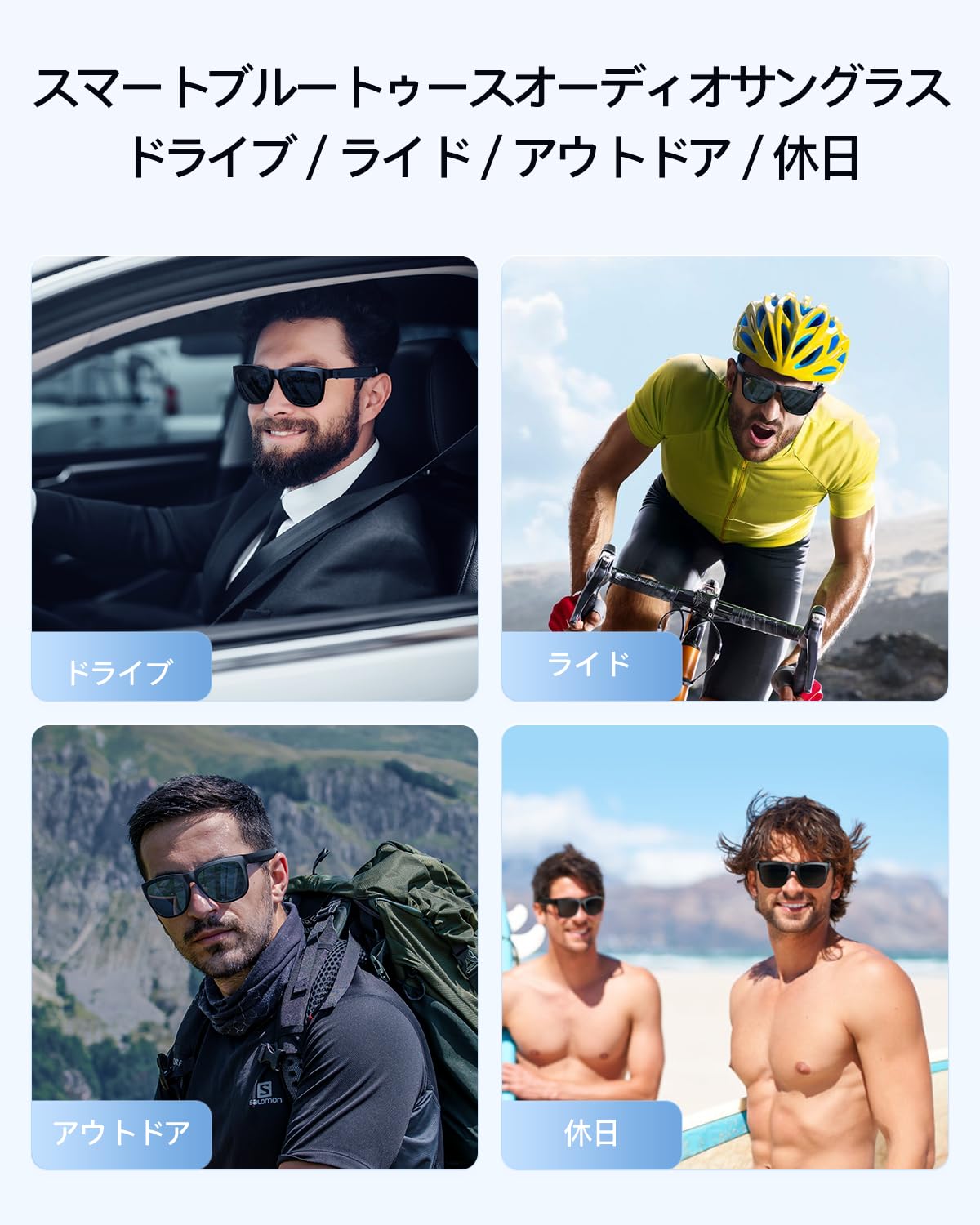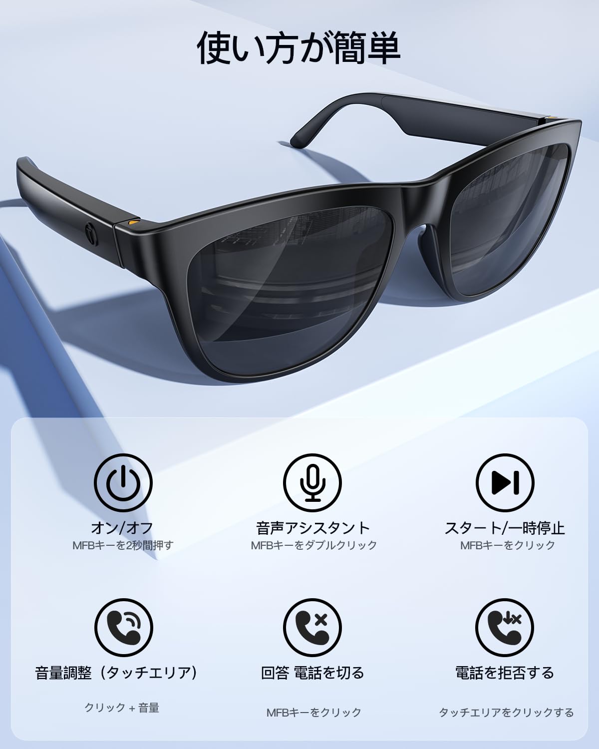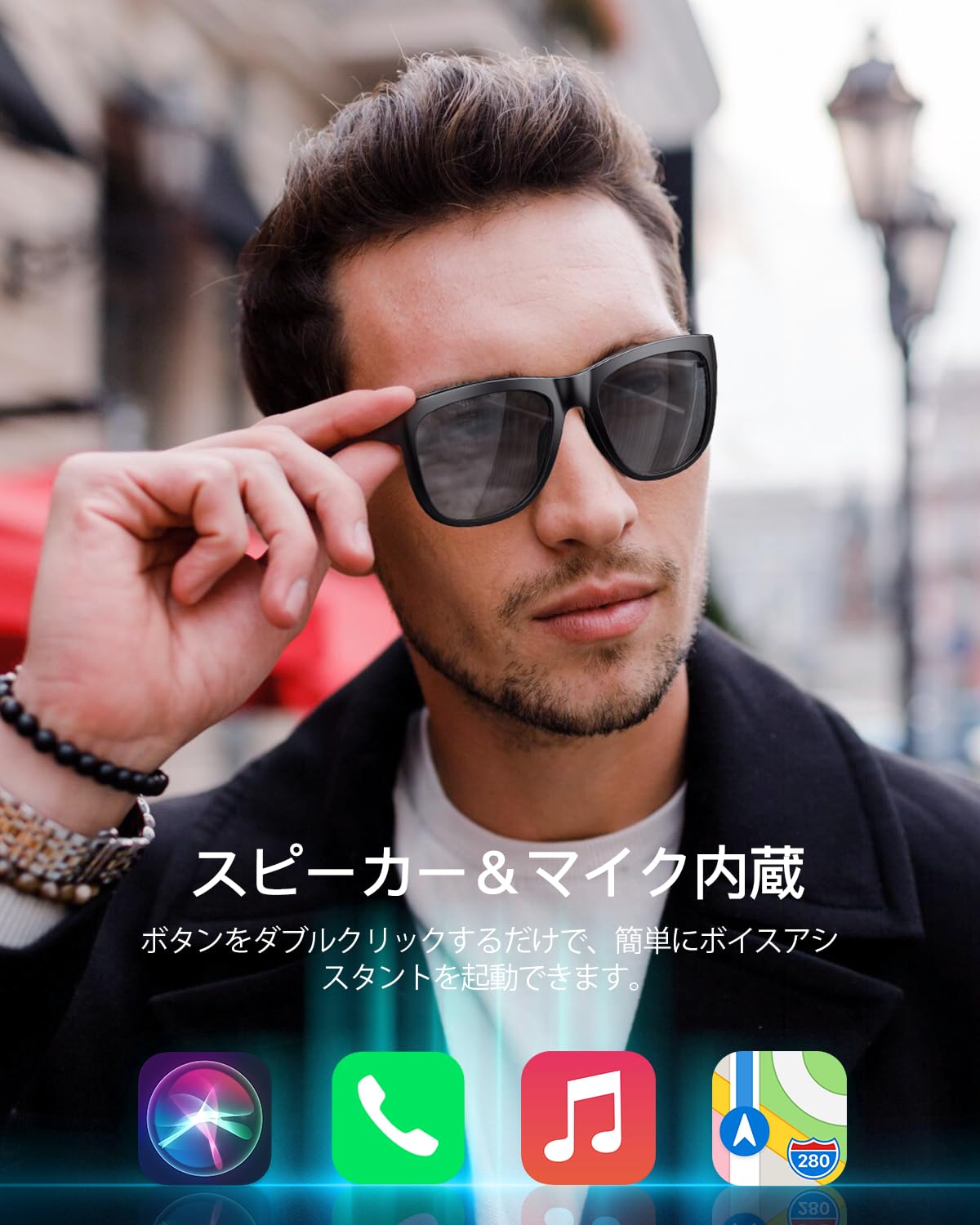 * 【智能音声制御、操作簡単】音楽の再生・一時停止、電話の管理、音声アシスタント機能の起動など、スマートブルートゥースグラスは簡単に操作できます。