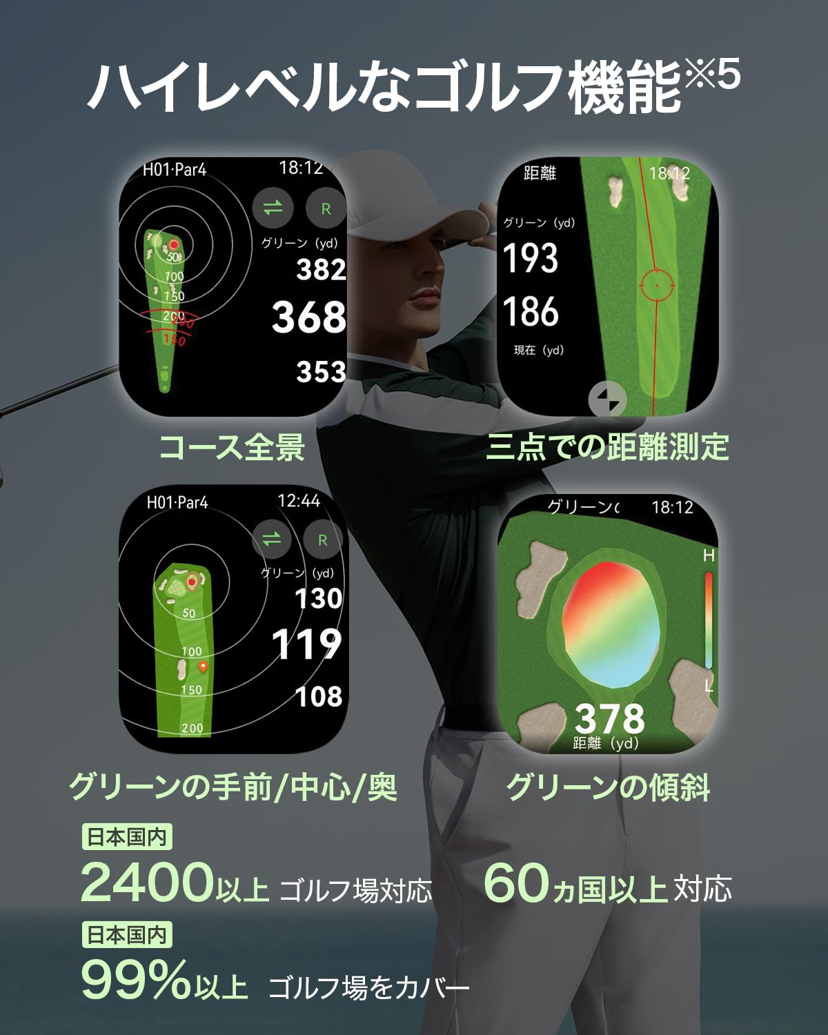 * 【ゴルフナビ、登山、トレランなど豊富なワークアウト】パワフルなゴルフナビ機能、登山、トレイルランニング、約40mフリーダイビングなど、100種類以上のアクティビティを見つけ、楽しむことができます。また、新たに搭載された気圧計によりハイレベルな測定も可能です。
