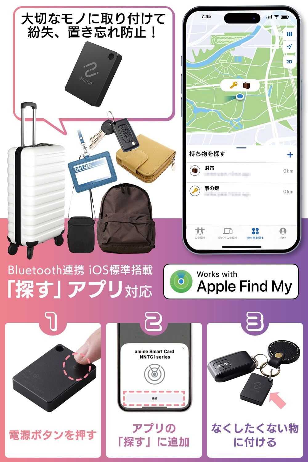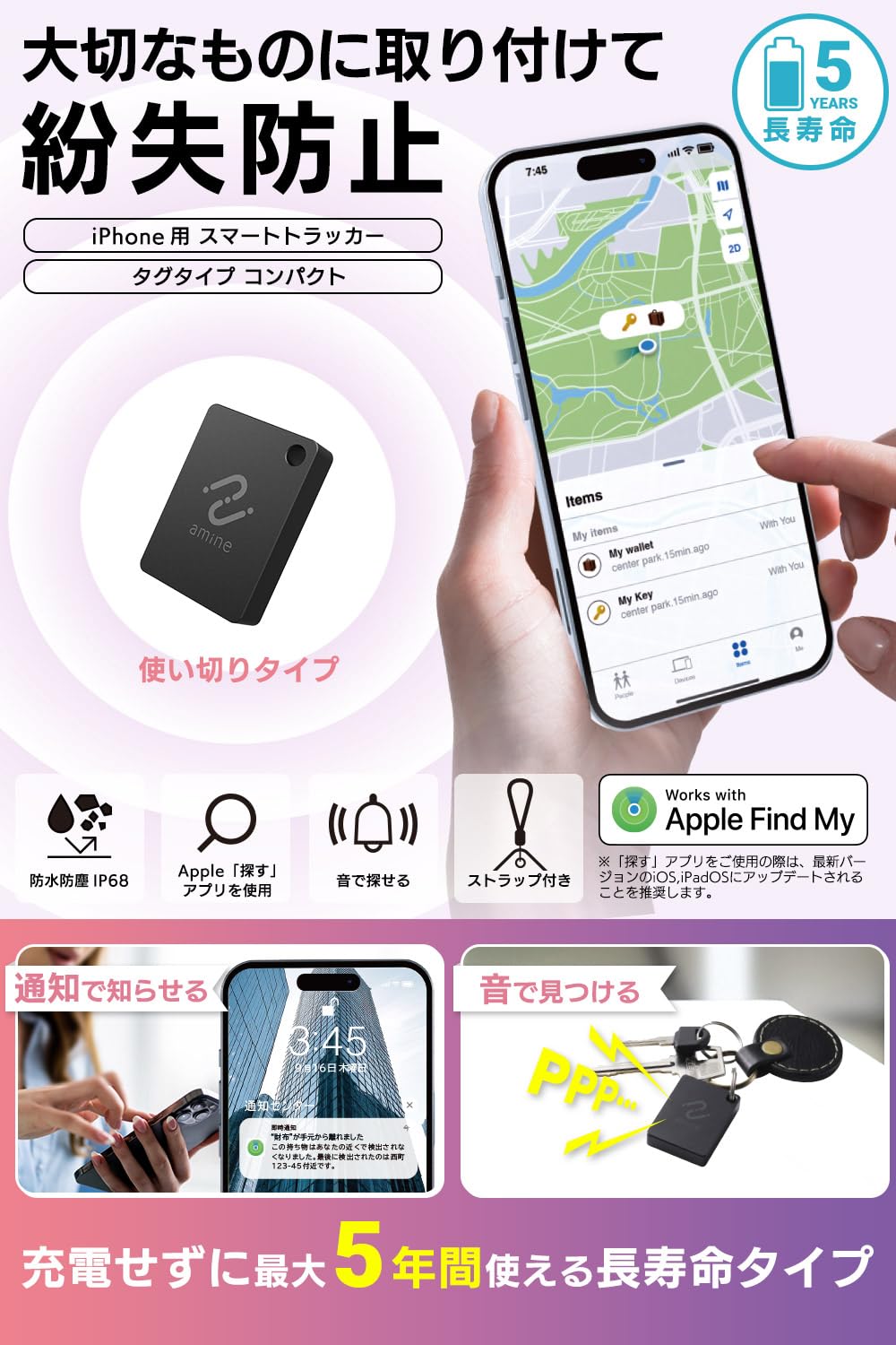 ロジテックダイレクト 最大5年 使い切り スマートタグ 紛失防止タグ 探す iPhone iPad 用 amine 忘れもの防止タグ 位置確認 追跡 探し物発見 iOS スマホ タグ型 LGT-LWNNTG1BKA