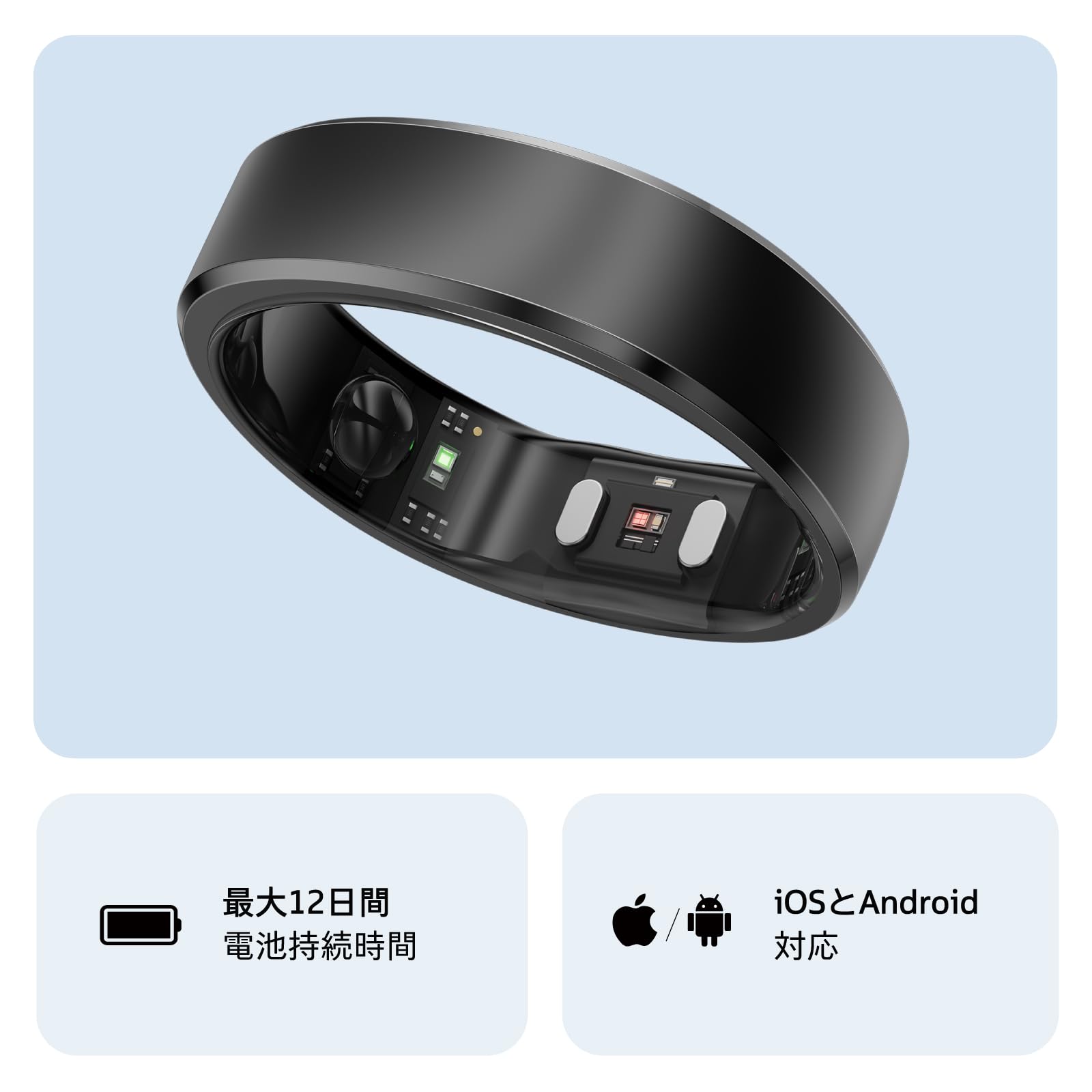 * 【長持ちバッテリー】RingConn Gen 2は最大10-12日間のバッテリー駆動時間を実現。サイズにより異なり、大きいサイズ(12-14)は最大12日間。スマート充電ケースと併用で150日を超えます