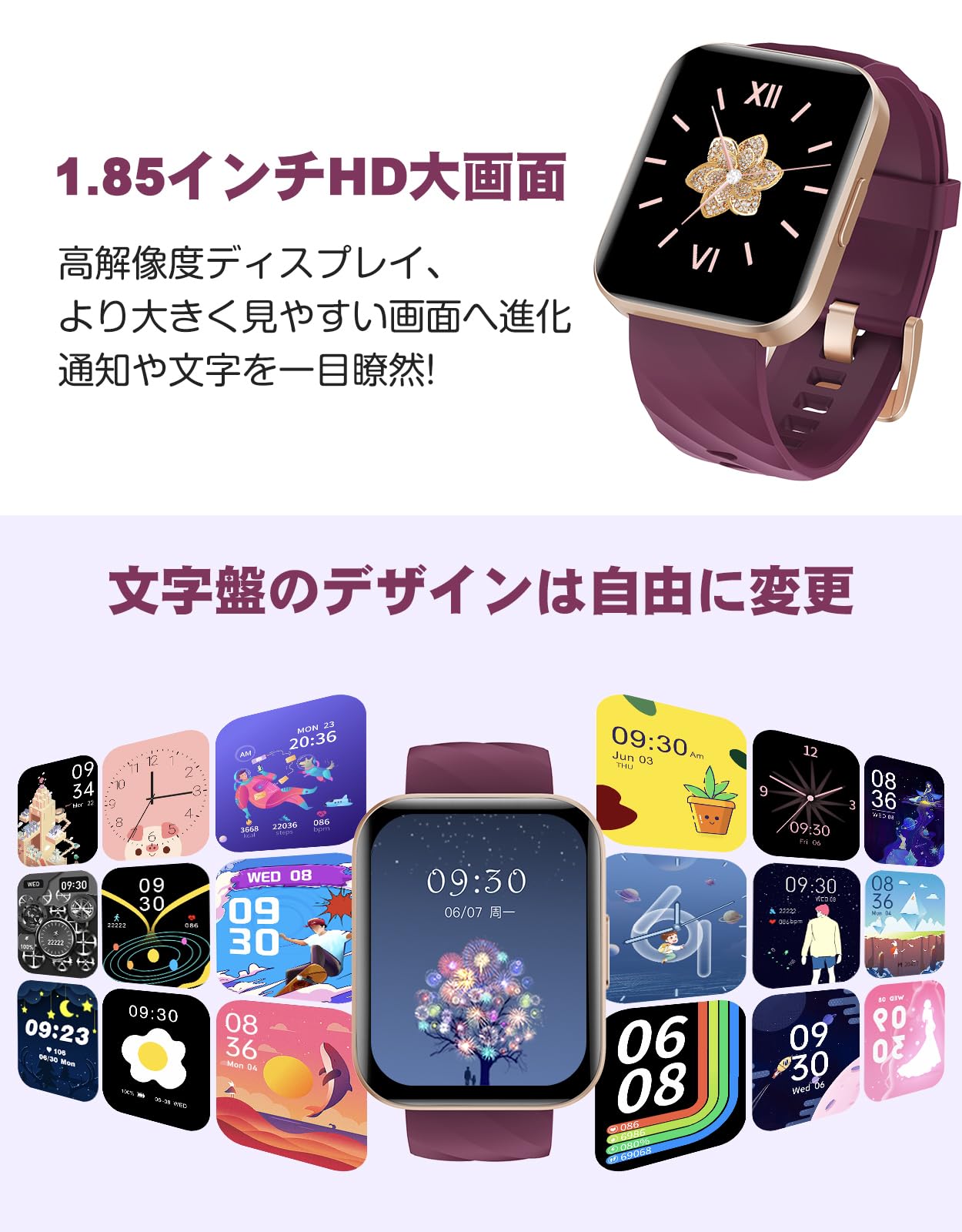 RUIMEN スマートウォッチ iPhone アンドロイド 対応 通話機能付き Smart Watch 1.85インチ大画面 レディース メンズ 腕時計 100+種類運動モード ゲーム 生理周期管理 Gmail/着信&メッセージ通知 スマホ探す 天気予報 音楽制御 長持ちバッテリー ストップウォッチ 目覚まし時計 技適認証済み