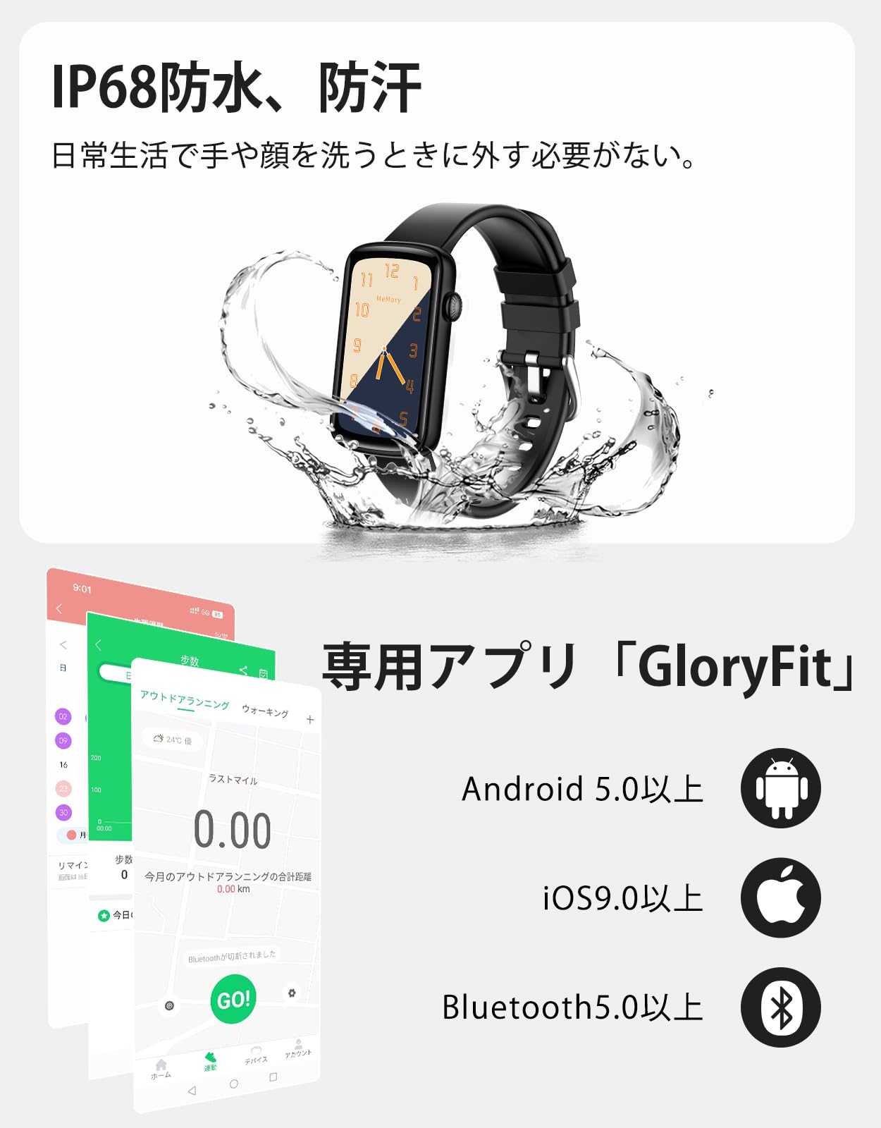 * 「1.47インチ·超軽量·使いやすい」スマートウォッチL2は、1.47インチの長方形のスクリーンを搭載し、解像度は170×320で、文字がクリアで読みやすくなっています。男女兼用で、バンドを含めた重量はわずか28.5gで、一日中付けていても違和感を感じません。タッチスクリーン操作で、アプリ「GloryFit」に接続すれば、簡単に使うことができます。また、このスマートウォッチは、多様なシーンで活躍できます。スポーツ時には運動データを記録し、日常生活管理に役立ちます。ビジネス時には、通知を受け取ったり、スケジュールを管理したりすることができます。さらに、レジャー時には、音楽コントロールや写真撮影のリモート操作が可能です。このように、様々な場面で活用できるスマートウォッチです。