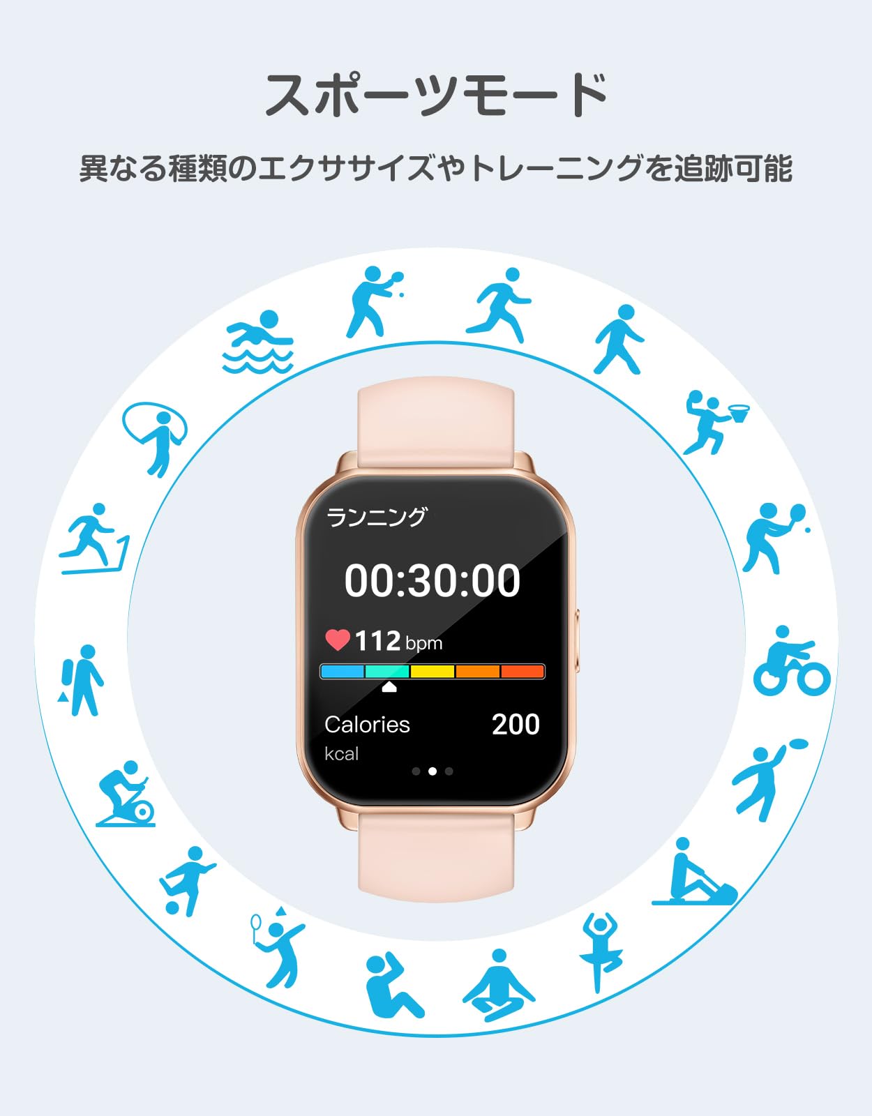 * 【100+種類スポーツ機能・活動量計】 100種類以上のスポーツモード:ランニング、ヨガ、水泳、登山、徒歩、テニス、サッカー、バレーボール、ダンス、腹筋、ハイキング、卓球、野球などを搭載、運動中のデータを記録し、いつでも運動状況を把握することができます。また、毎日の歩数や歩いた距離も記録されるので、目標値を設定することができます。毎日の運動量を正確に把握することができます、運動不足解消や運動好きな方におすすめです。