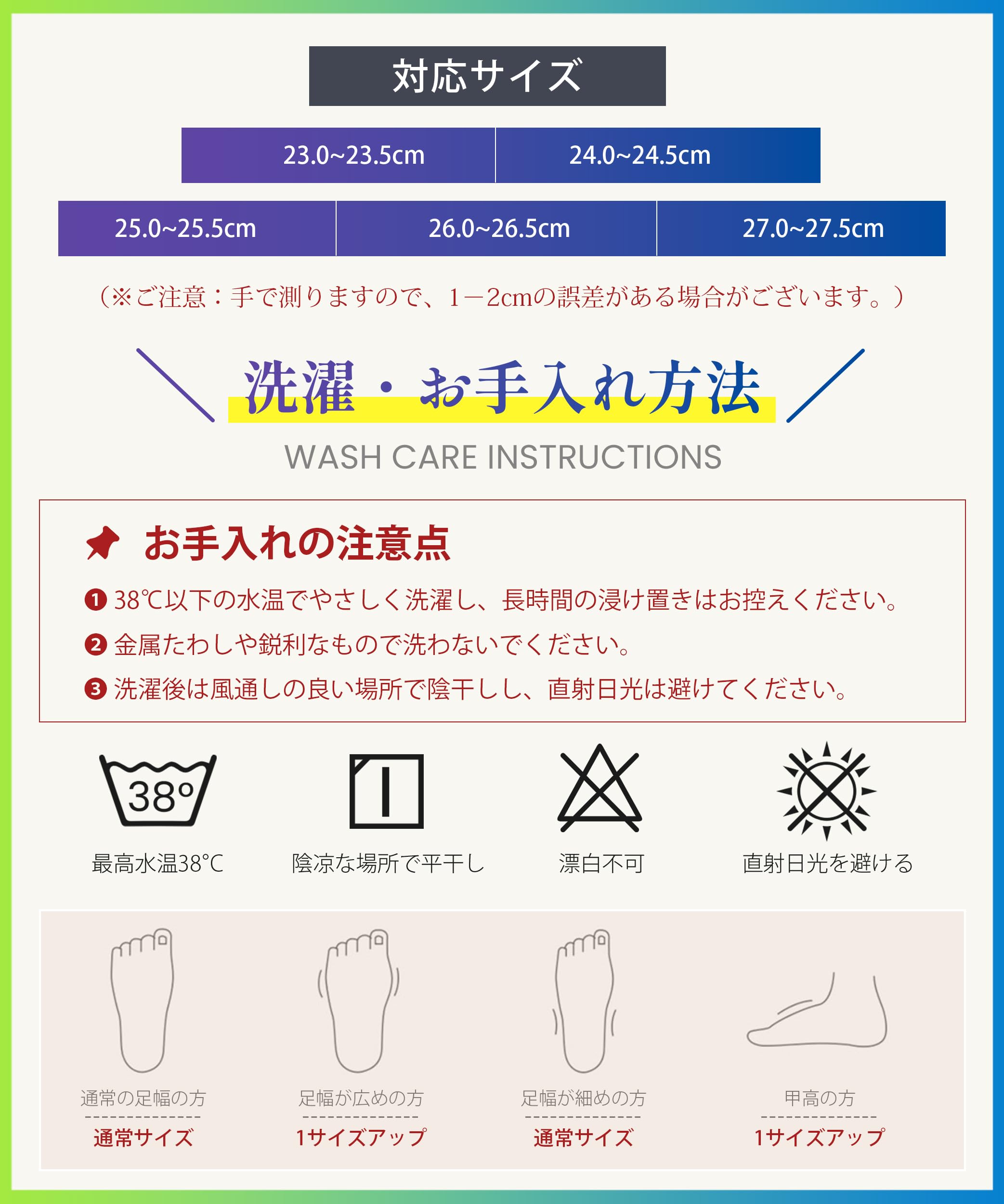 * 【かかと付き&無し2タイプ提供・5サイズ展開】AOYのスリッパ 室内はかかと付き&無しの2タイプを提供しており、ぴったりフィットするかかと付きデザインは歩いても脱げにくく、かかとが苦手な方にはかかと無しタイプをご用意し、どちらのタイプも選べるので、冷えやすい足元をやさしくガードし、足元の快適さをサポートします。サイズは選べる5種類あり、23.0-23.5cm、24.0-24.5cm、25.0-25.5cm、26.0-26.5cm、27.0-27.5cm。※足の甲が高め・幅広の方、またはゆったりめに履きたい方は、ワンサイズ~ツーサイズアップがおすすめです。