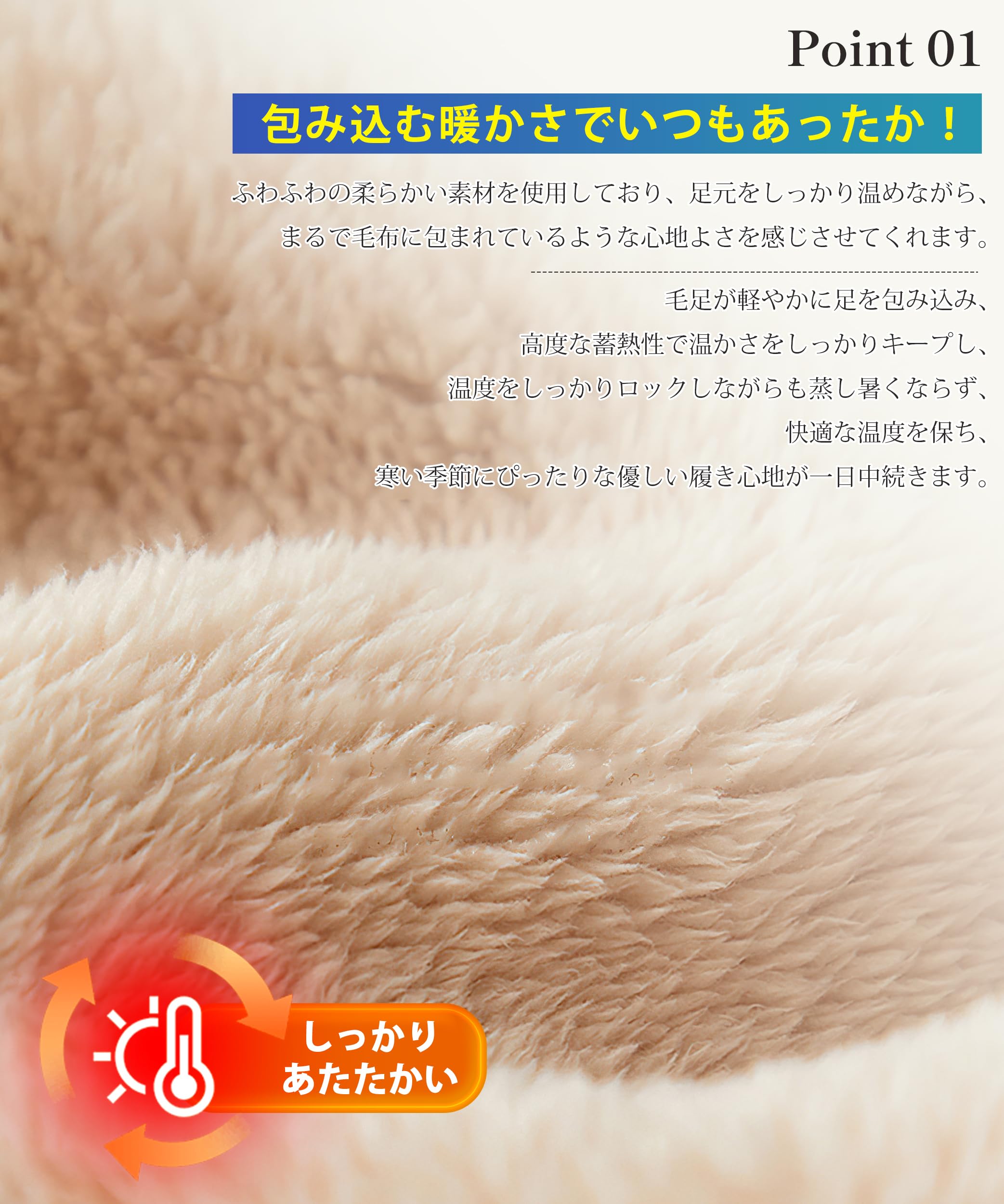 * 【寒い季節の必需品・足から暖かく&足もモコモコ】AOYのルームシューズはかかと付きデザインとかかと無しデザインの2種類から選べ、どちらもふわふわ裏起毛素材を使用し、足全体を包み込み、しっかり保温します。さらに、AOYのルームシューズは滑滑り止め付きで安全性もバッチリで、冷えが気になるご家族やご友人、大切な方への冬のプレゼントにもぴったりなアイテムです。この一足があるだけで、寒い日のおうち時間もぬくもりと幸せに包まれます。※本商品は圧縮包装でお届けするため、開封直後に折り目が見られる場合がございますが、4〜5日ご使用いただくうちに自然と元に戻ります。あらかじめご了承ください。