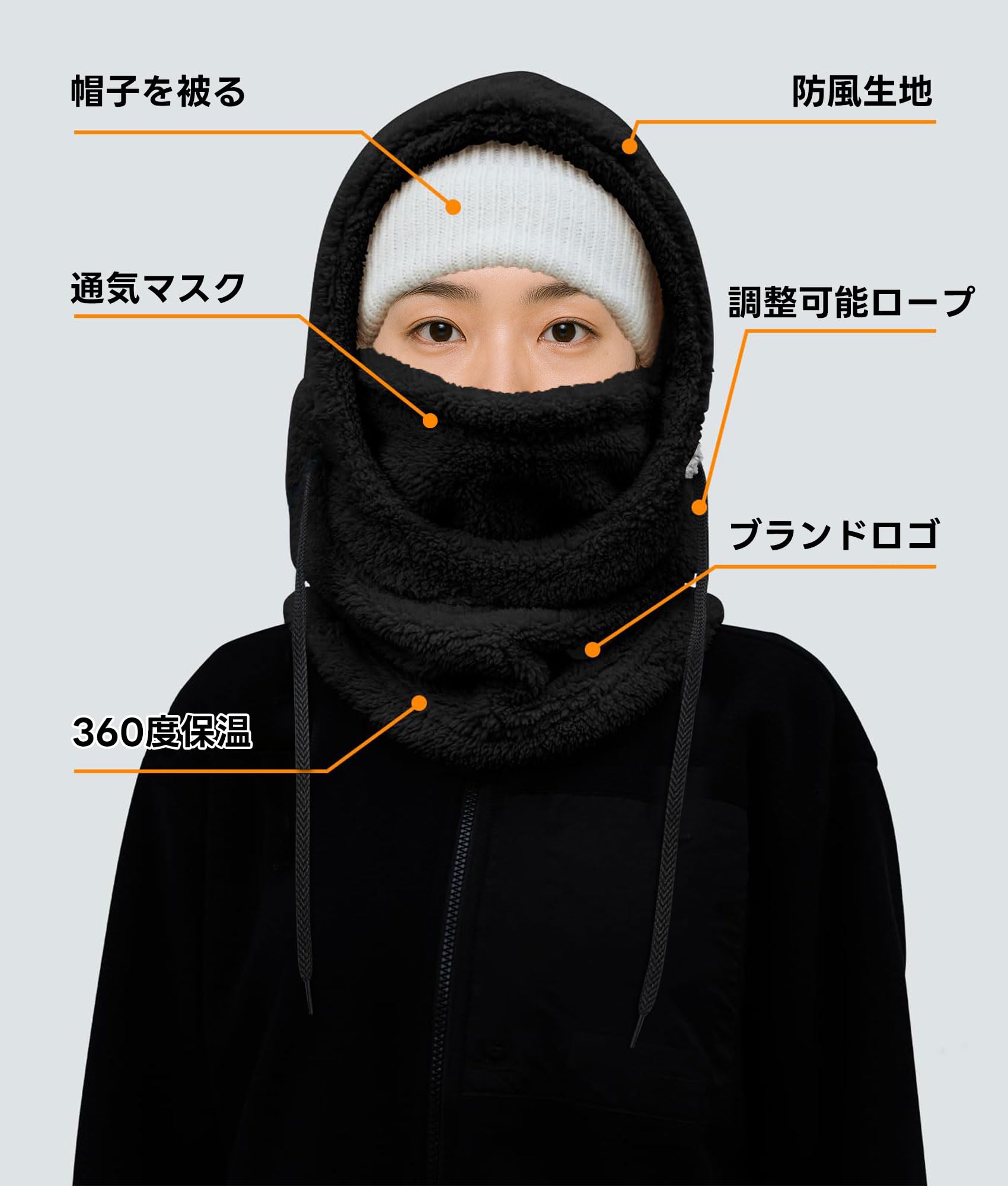 * 【3D立体設計・着脱しやすい】日本人の顔と頭部に合わせた3D立体設計で、隙間なくフィット。首元の調整紐で自分にぴったりのサイズに調節可能です。一般的なフード付きネックウォーマーよりゆとりがある設計で、着脱が楽で圧迫感がありません。