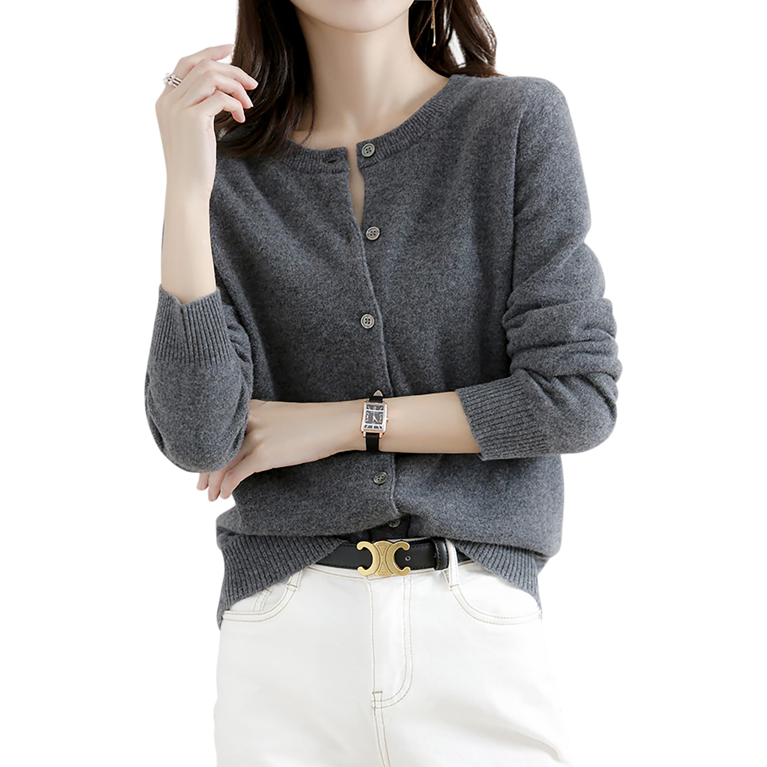 [SHANLIANG] ニット トップス カーディガン レディース 前開き 長袖 無地 重ねる着便利 体型カバー 着痩せ 小顔 無地 高伸縮 セーター インナー 冷房対策 カジュアル オフィス 通勤 日常 プレゼント (JP, アルファベット, L, ダークグレー)