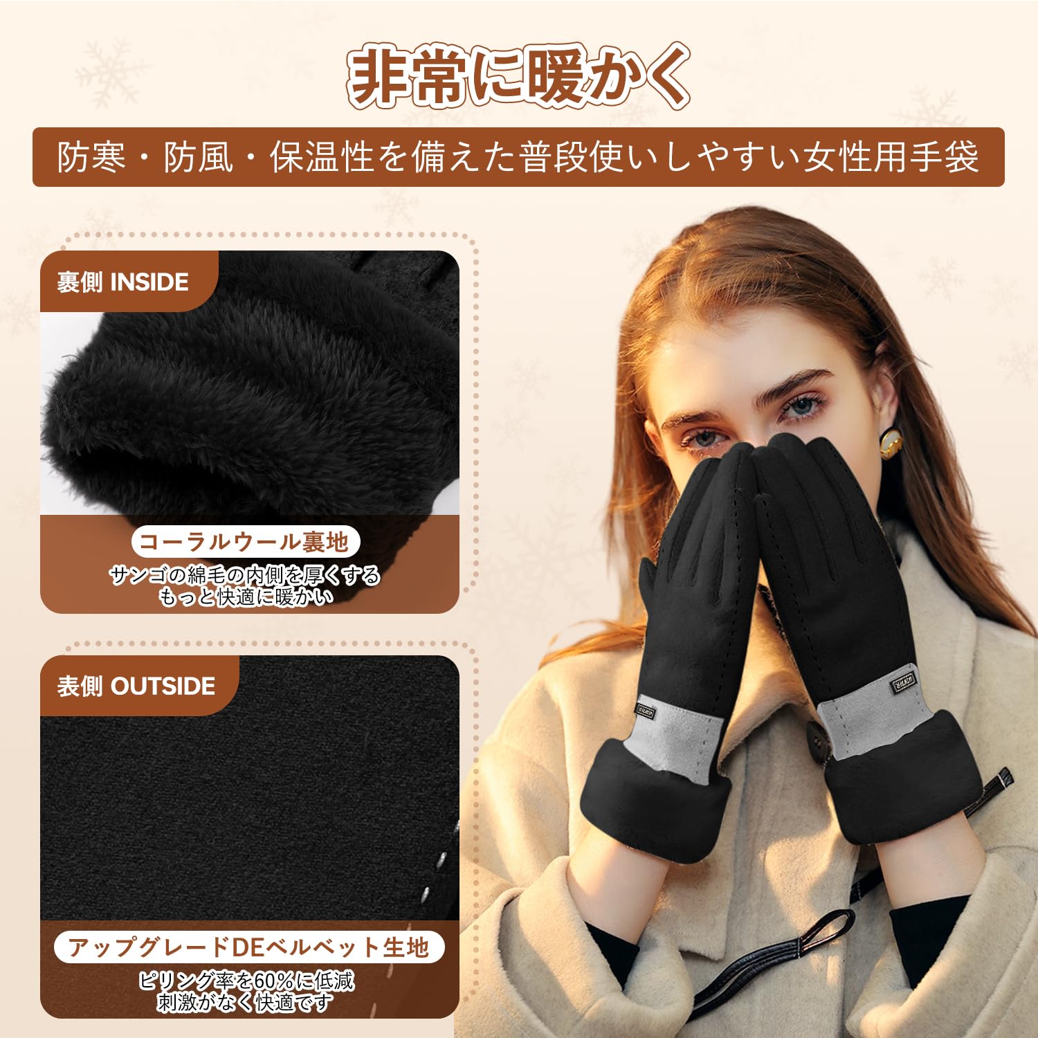 * 【 温かさを保持 】手のひらにしっかりとフィットする柔らかな素材を使用し、手首部分のスプリングで冷たい風の侵入を最小限に抑え、優れた保温性を提供します。