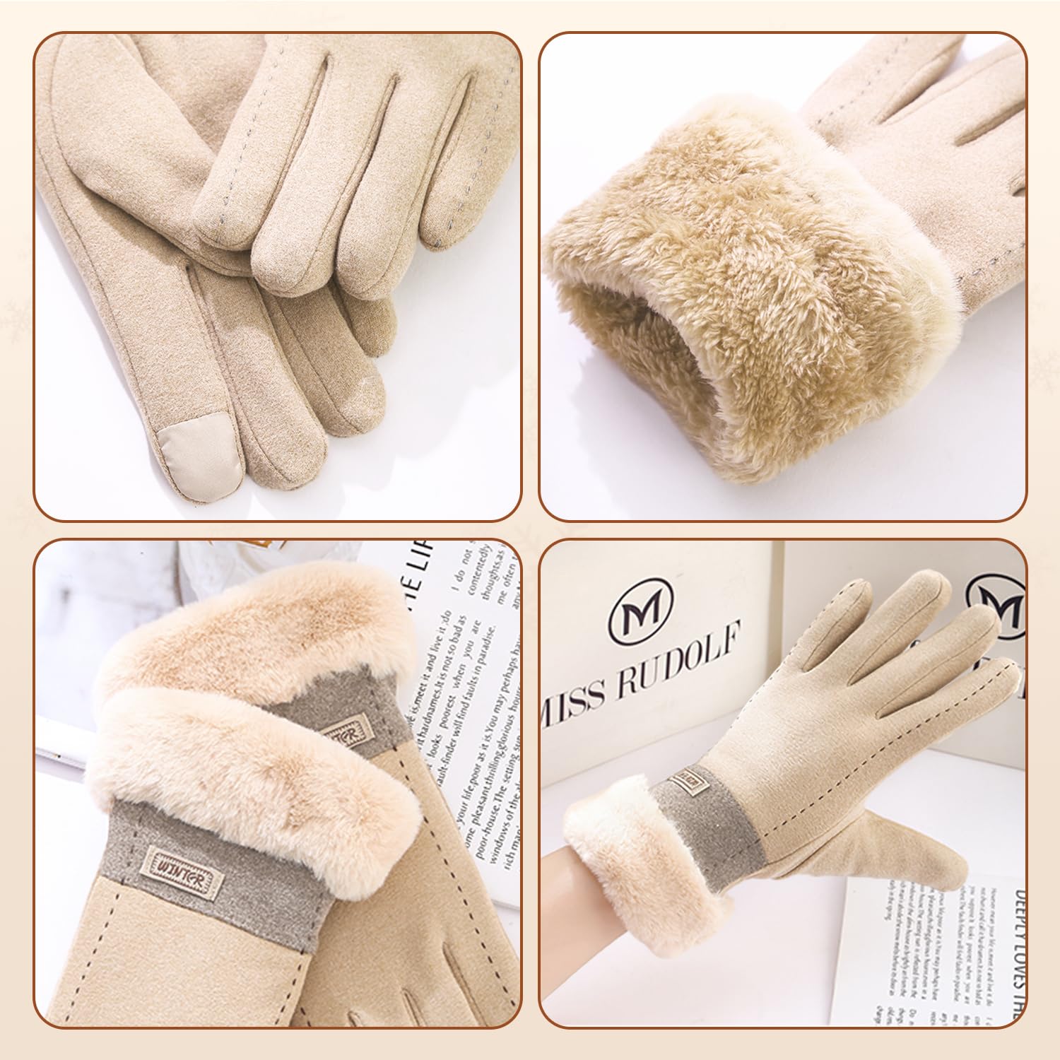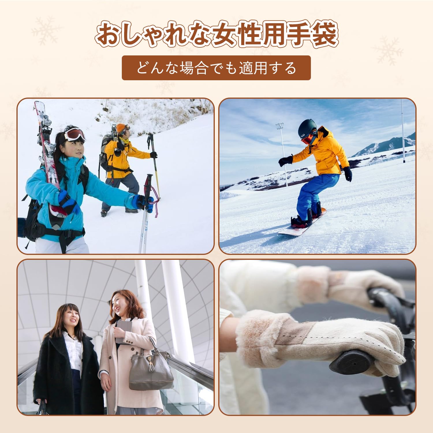 [Maiso] レディース 手袋 冬用 防寒 防風 保温 スマホ対応 暖かい ふわふわ 裏起毛 通勤 通学 旅行 自転車 プレゼント (White)