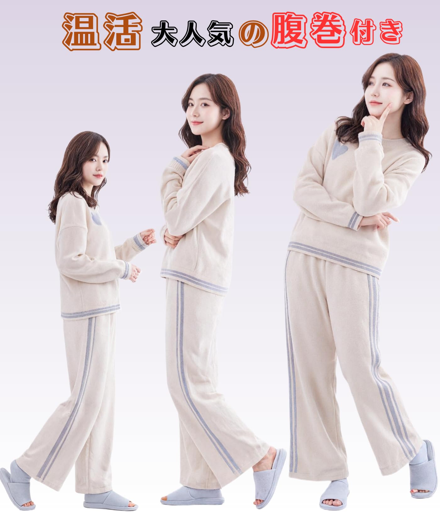 [Beatgos] 腹巻付き ルームウェア 部屋着 パジャマ レディース モコモコ 暖かい 長袖 春 秋 冬 (YS02 米白 M)