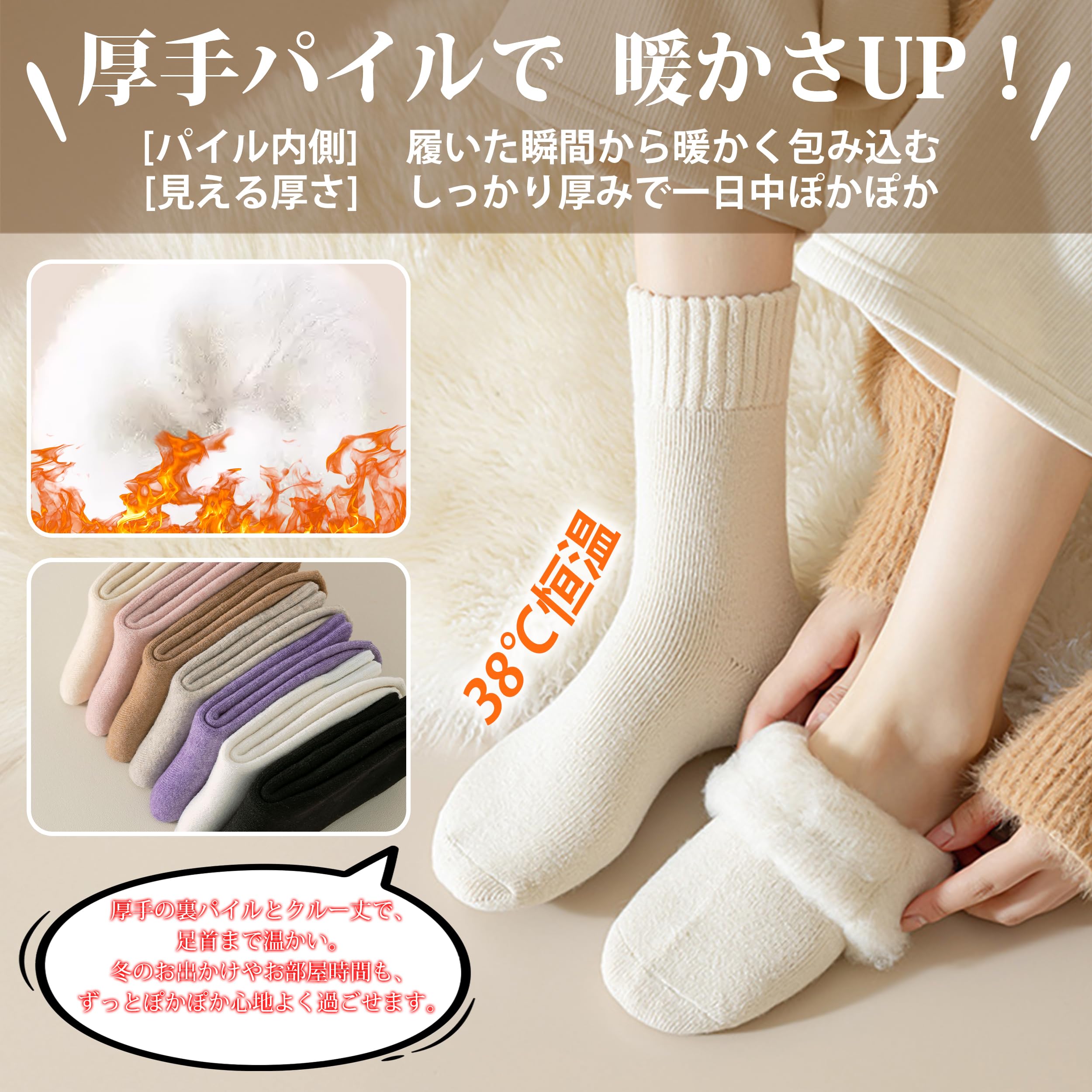 * 【厚い裏パイル・冬日の足温活】見えるこの厚さは履く瞬間に暖かくなる!このパイルソックスは極厚裏パイル仕様で、普通の靴下の約2倍のボリューム。保温性も約1~2倍と高く、冷えやすい冬の足元をふんわり包み込みます。やわらかな裏起毛がじんわり暖かさをキープし、お部屋でも外出先でも冷えからしっかり守ります。
