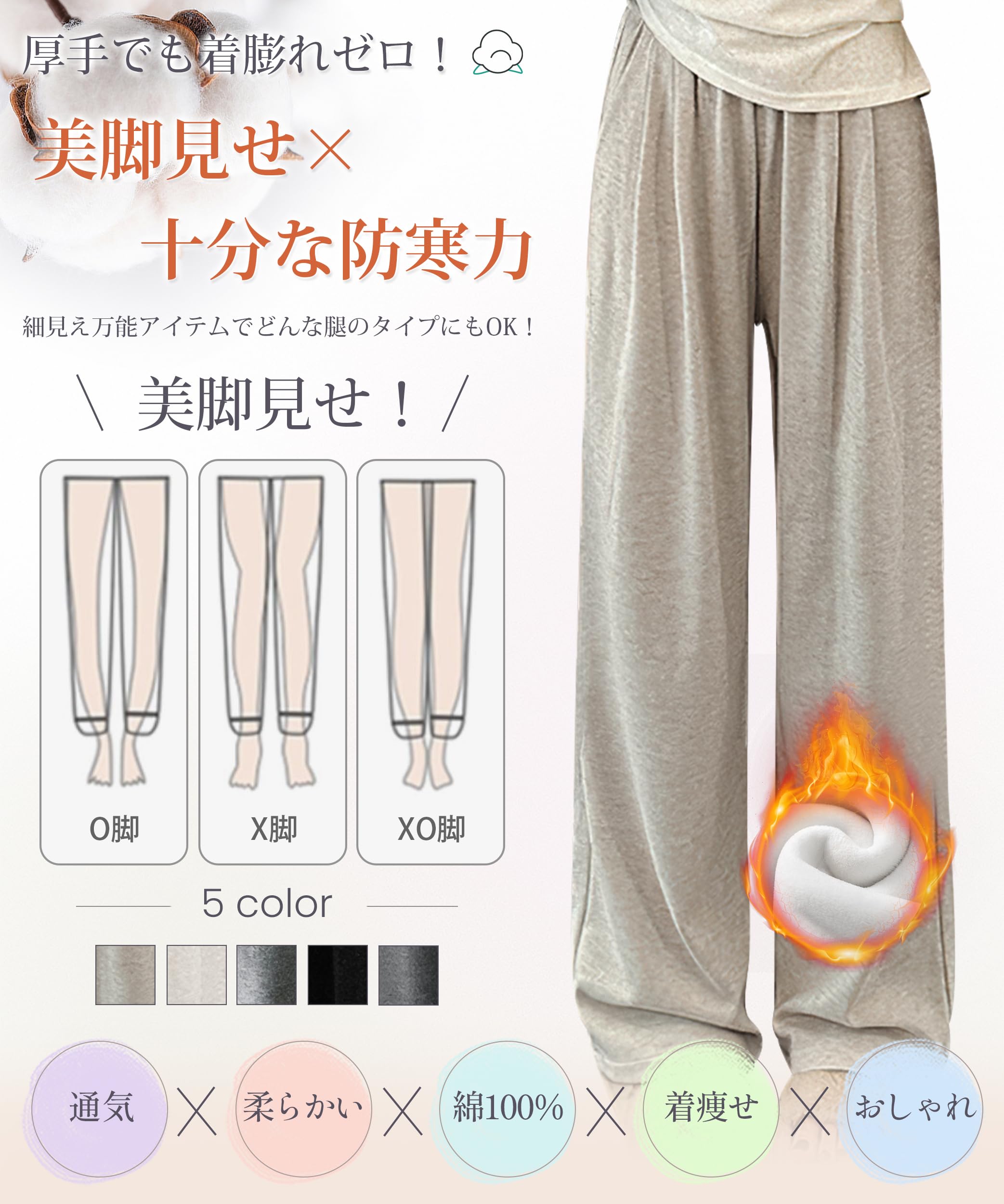 * 【真冬も安心!ふんわり裏起毛×柔らか素材】裏起毛がしっかりと空気を含んで熱を逃がさないから、外は雪がちらつく日でも脚はぽかぽか。内側はふわっとした裏起毛仕様で、穿いた瞬間からあたたかさを実感ズボン レディース。やわらかく伸びのあるストレッチ素材が体の動きにやさしくフィットし、長時間穿いてもチクチクしない快適な肌ざわりです。外出時はもちろん、おうちでのリラックスタイムにもぴったりです。肌寒い朝の通勤や、冷え込む夜の外出でも、ふんわり包み込まれるような心地よさでずっと暖かズボン レディースです。厚手でもゴワつかず、動きやすさもキープしています。