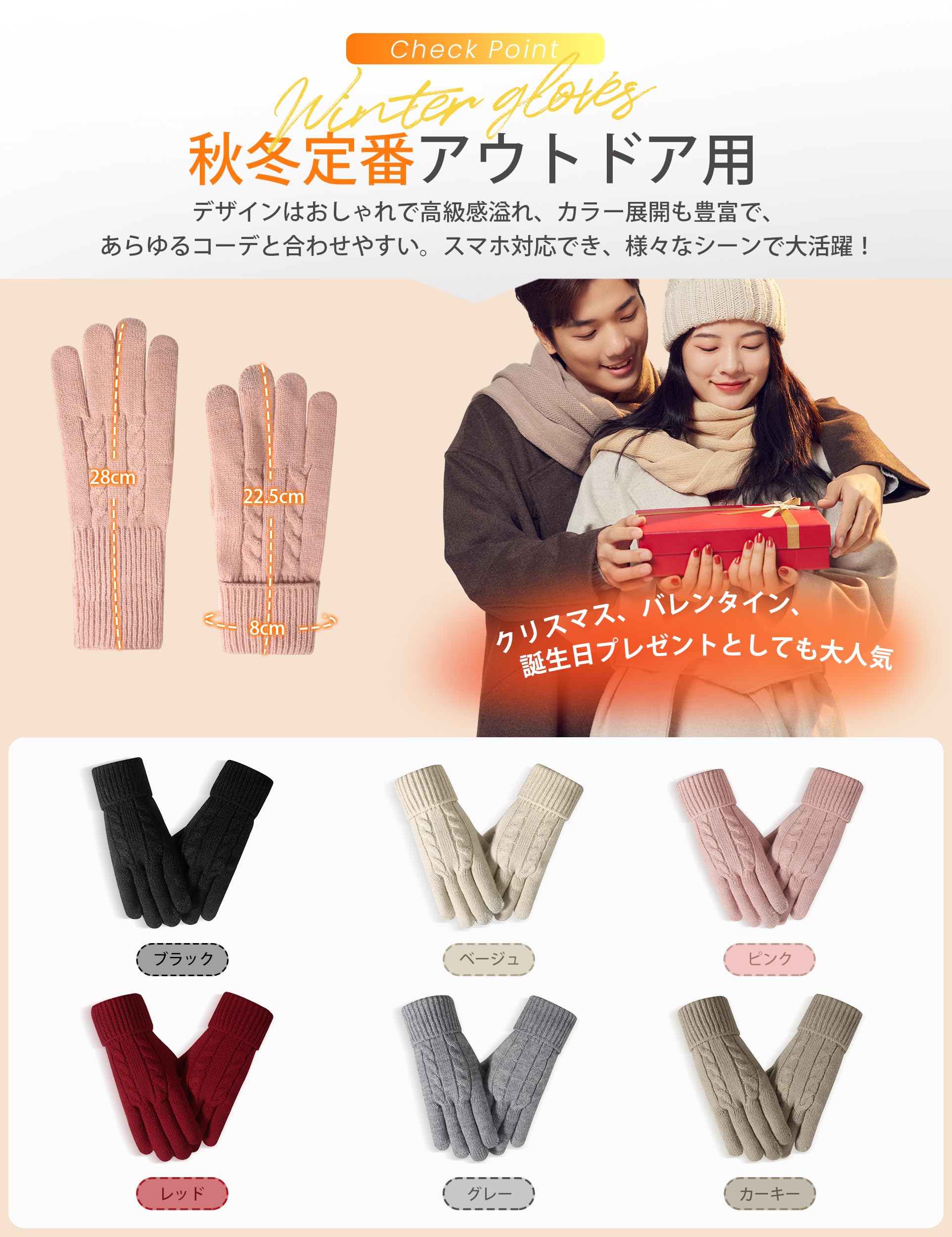 * 【裏起毛加工!防寒保温】レデース手袋は外側に保温性高いニットを採用、内側に裏起毛加工されたので、熱を閉じ込めやすく、防寒保温性に優れ!また、採用したアクリル素材は、繊維の間に空気の層を作ることで熱の伝わりを抑え、体温を逃がさずに暖かさを保つことができます。 軽くてふんわりとした感触があり、空気を含むため保温性に優れています。指先までしっかり温めてくれるスマホ手袋、寒い天気から手を守ります!