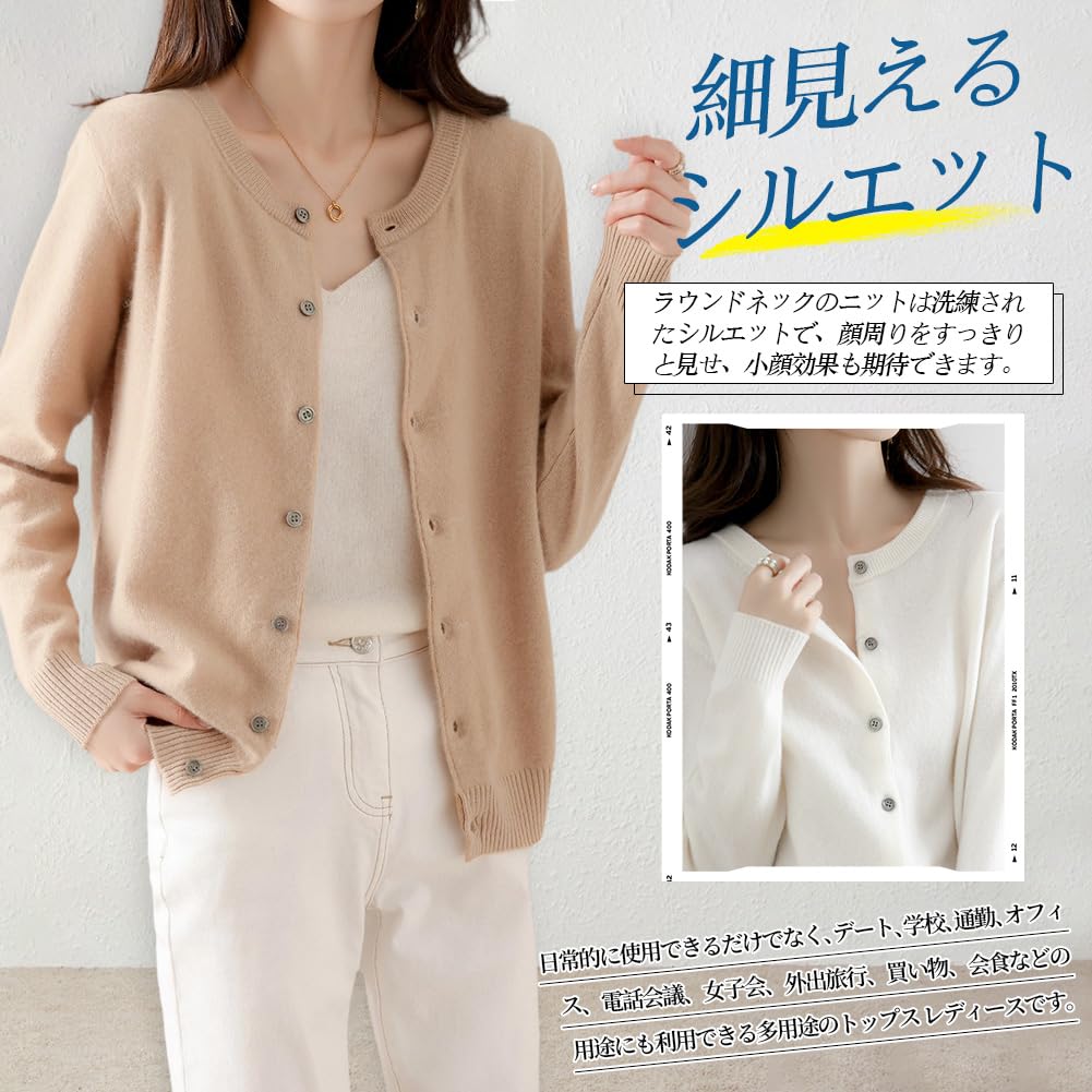 * 【細見えるシルエット】ラウンドネックがポイントのカットソー、年齢を問わずご利用頂けるレディース長袖ニットです。ニットカーデは裾・袖口・襟元にリブ編みを施し、全体を引き締めてすっきりとした。ラウンドネックのトップスのため、首への負担がないだけなく。裾、袖からチラ見せさせれば体型カバーや着痩せコーデも叶います。