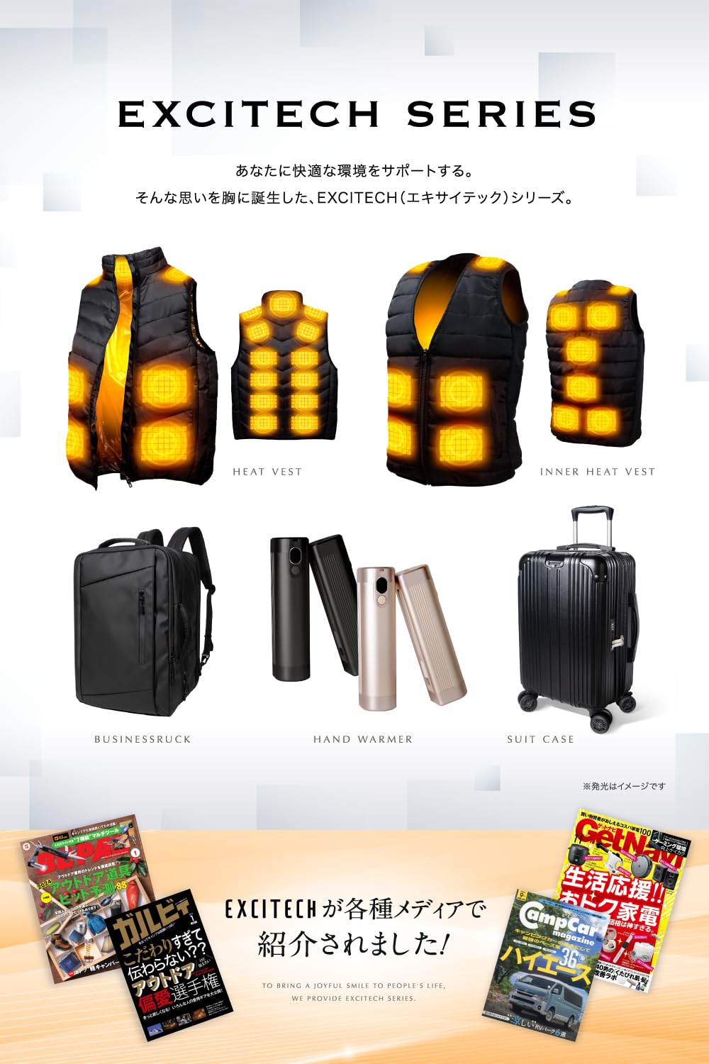 * 【日本企画・国内サポート対応】製品に関するご質問や不具合がございましたら、弊社カスタマーサポートまでお気軽にご連絡ください。 ※お手持ちのバッテリーを使用する際は、『USB出力:5V⎓4.5A/5V⎓3A/9V⎓2A/12V⎓1.5A』"すべてに"対応しているものをご使用ください。 ※非対応・経年劣化したバッテリーを使用した場合、電源が入らない・正常に作動しない場合があります。 ※Excitech Heat Vestに対応していないバッテリーによる故障は保証期間内でも、対象外です。 ※本製品にACアダプターは付属していません ※充電の際は必ず、定格電源DC5V⎓2A~2.5AのACアダプターをご使用ください。