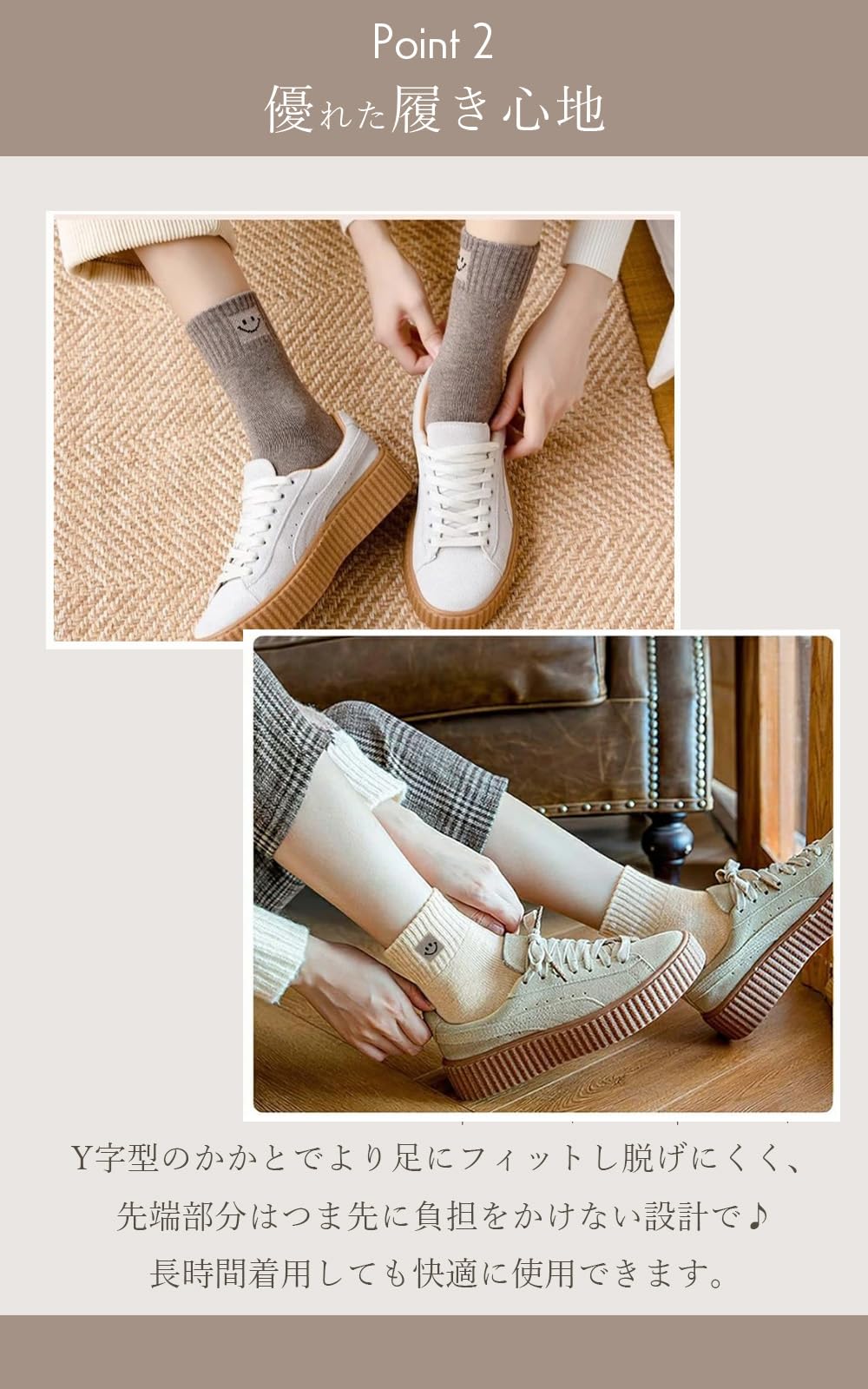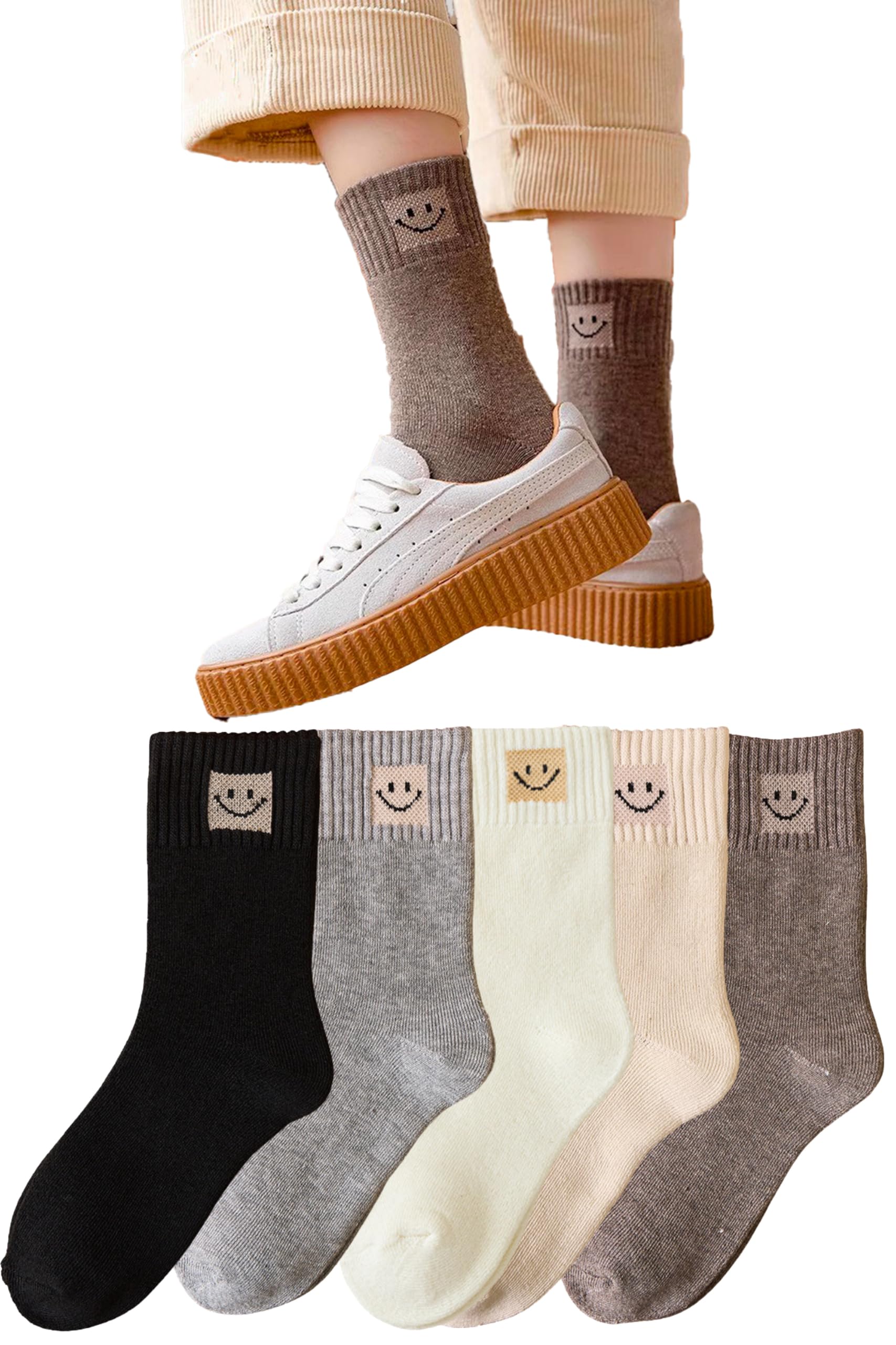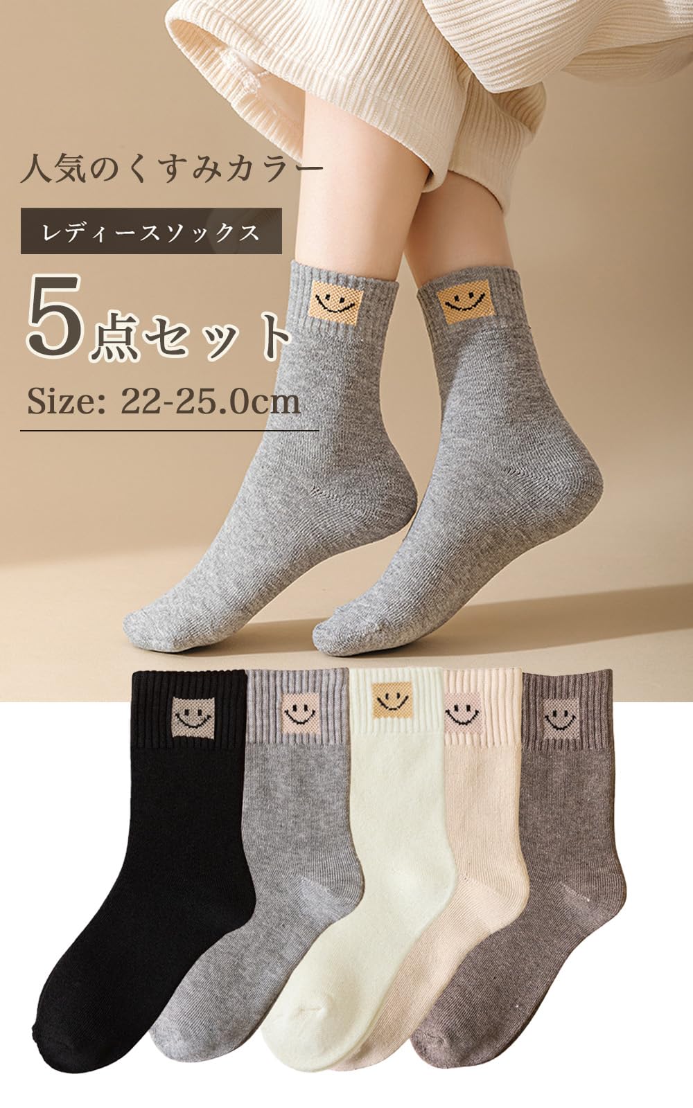 * 可愛いスマイルマークの刺繍入りのクルー丈5足セット厳選した人気のくすみカラー5色セットは、上質なコットン素材で柔らかくて履き心地抜群!どんなスニーカーやスカートにもピッタリ似合うこと間違いなし
