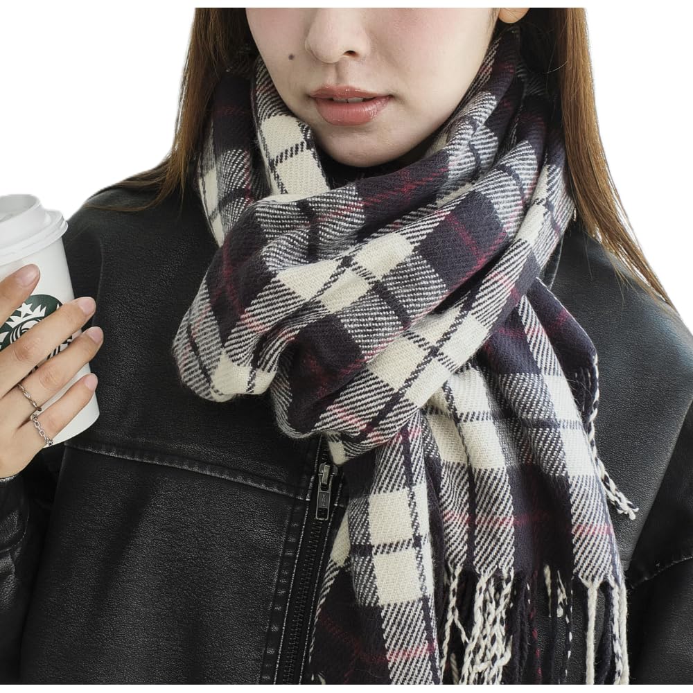 [ウィゴー] 男女兼用 大判 マフラー ストール チェック 無地 スクール 学生 中学生 高校生 大人 プレゼント ギフト クリスマス 定番 秋 冬 レディース メンズ F 大判(タイプB) ネイビー