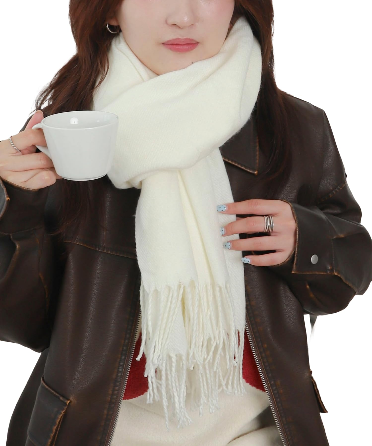 [ウィゴー] 男女兼用 大判 マフラー ストール チェック 無地 スクール 学生 中学生 高校生 大人 プレゼント ギフト クリスマス 定番 秋 冬 レディース メンズ F 大判(タイプB) ホワイト