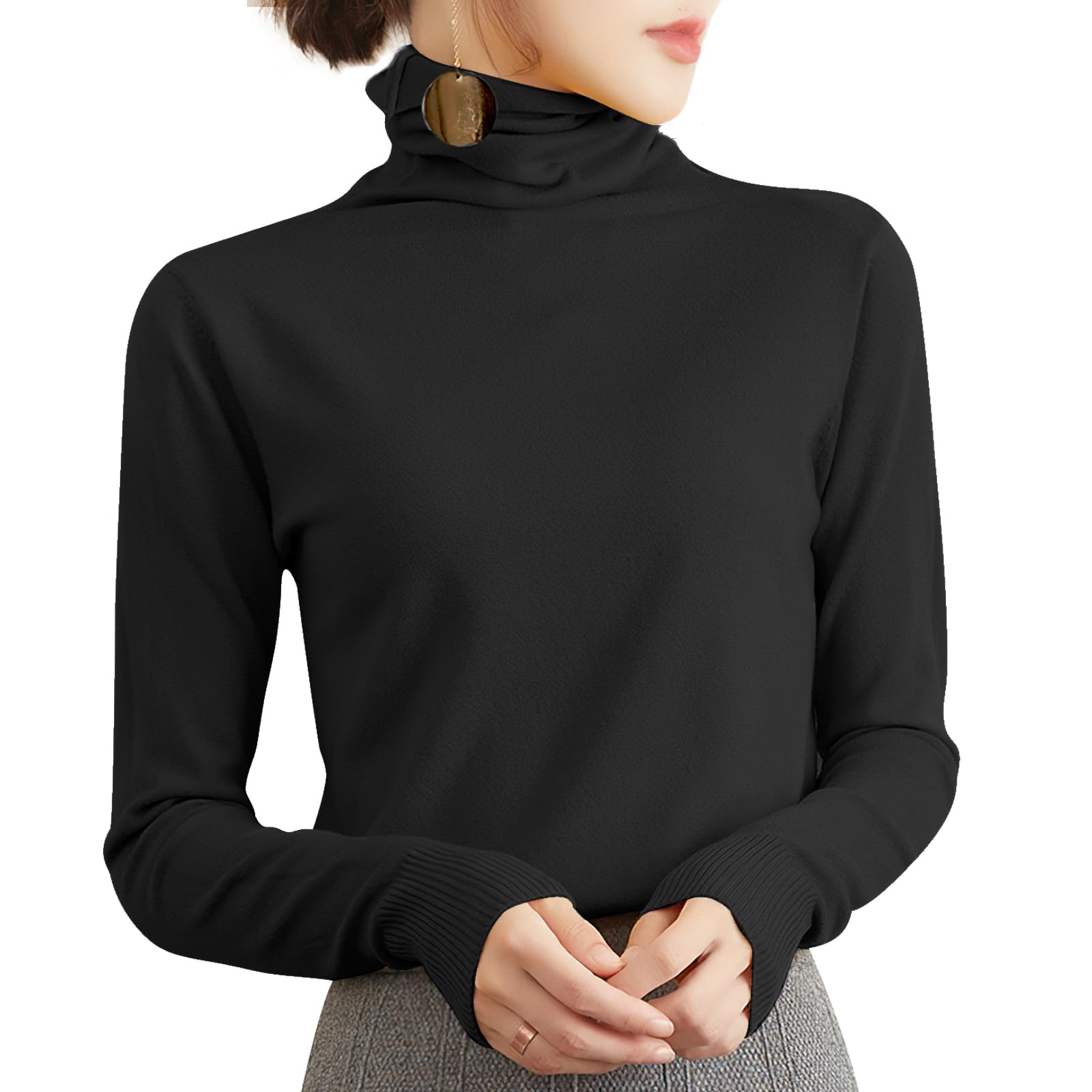 [YUMISS] セーター レディース 10色展開 【超繊細断熱保温素材・首元まであったか・こなれ感満点】ハイネック ニット 暖かい 柔らかい 着回し トップス 秋冬 おしゃれ カジュアル オフィス インナー カットソー (JP, アルファベット, XL, ブラック)