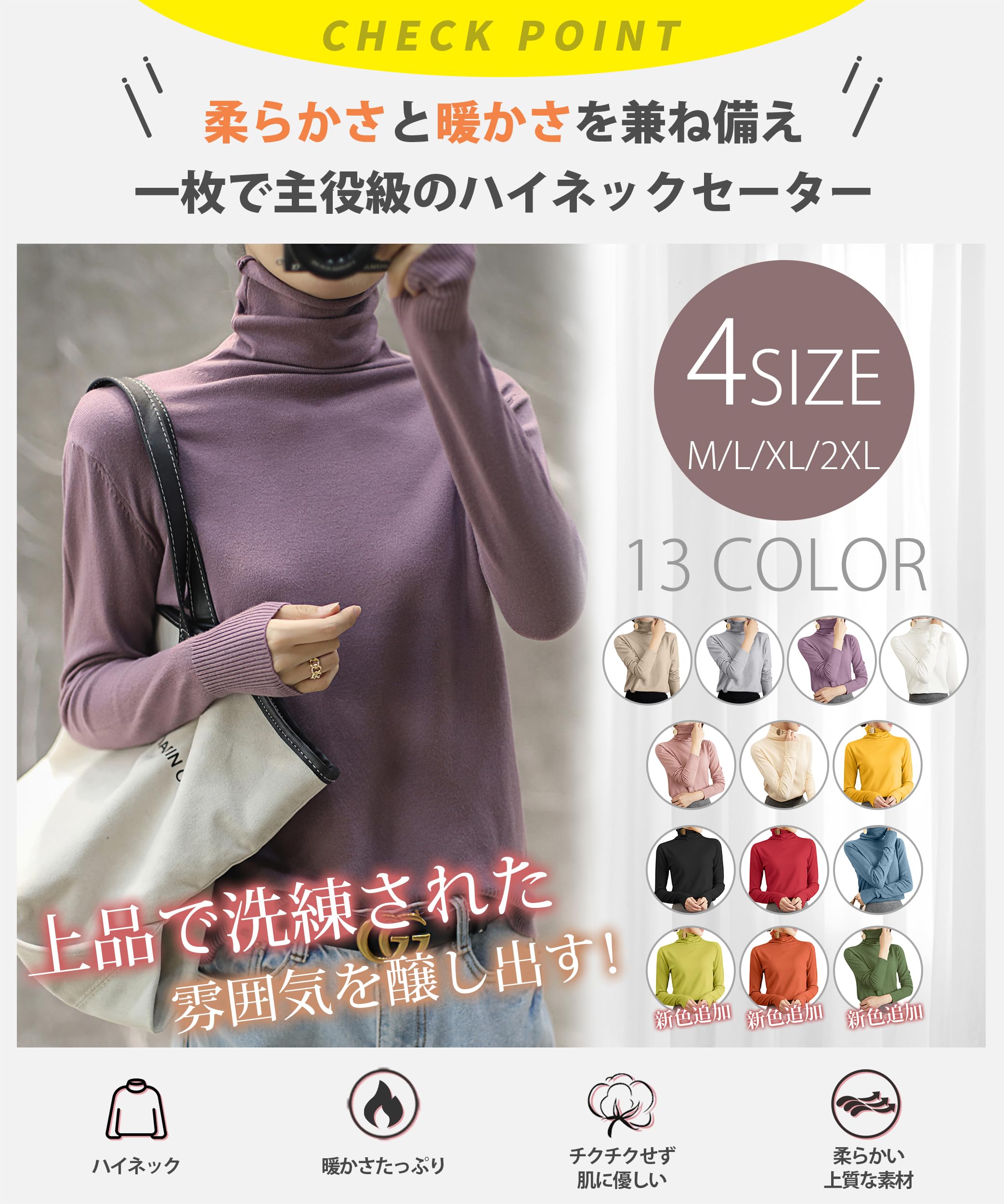 * 【秋冬のシーンで大活躍】トレンドに左右されなくシンプルなハイネックセーター、デイリーコーデの主役としては活躍すること間違いなし。ブラック、ホワイト、グレーなどの落ち着いたカラーから、パープル、ブルー、レッドなどのアクセントカラーまで、多彩なバリエーションでシーンや気分に合わせて選べるセーター。通勤、デート、普段着、様々なシーンで重宝しています。