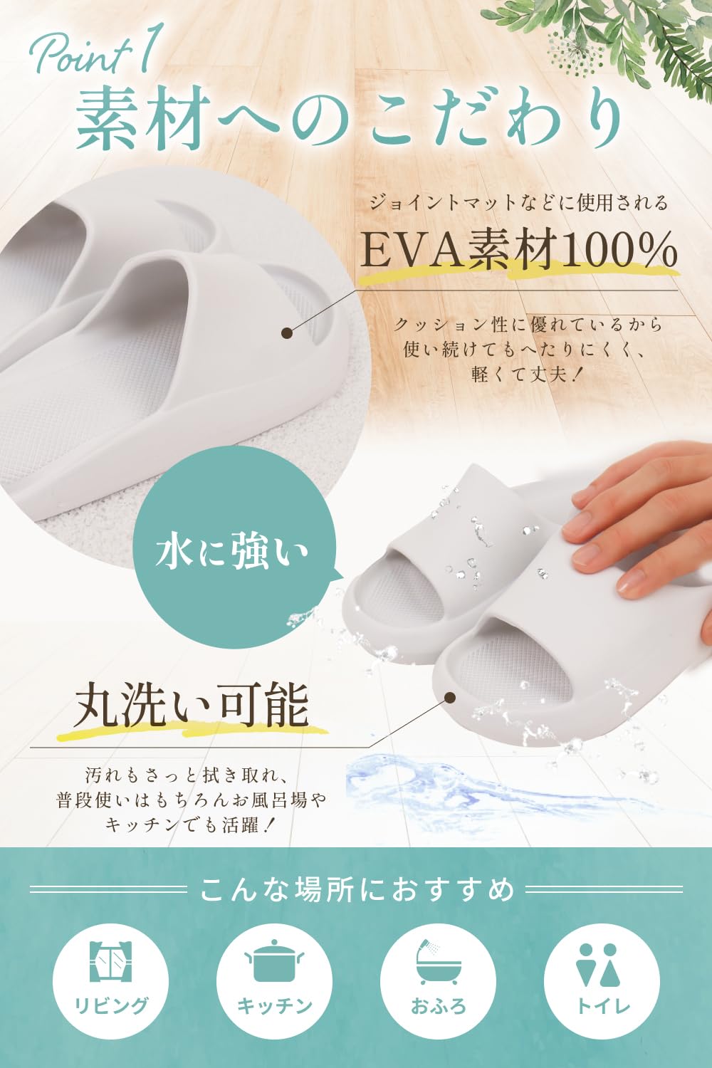 * 【弾力性に優れた素材】スリッパの素材は音や衝撃を吸収するジョイントマットにも使われる弾力性に優れた100%EVAを使用しています。着用し続けてもへたりにくいため長期間マイルームシューズとして愛用することができます。