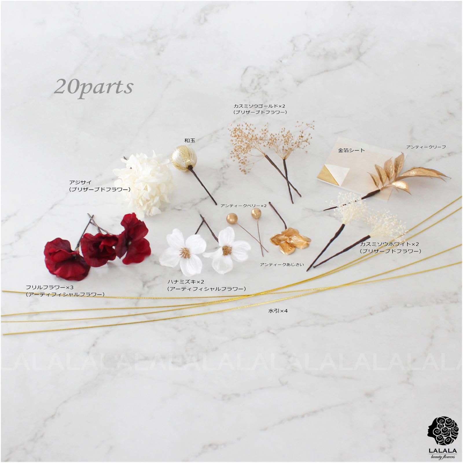 * 【オリジナルデザイン】 LALALA beauty flowersの髪飾りは、専属デザイナーが一つひとつのディテールにこだわり、洗練された美しさを追求して創り上げています。トレンドを取り入れながらも流行に左右されない上品なデザインで、日常から特別な日まで、装いにさりげない華やかさを添えます。大人の感性に寄り添う、LALALAならではのスタイルをお楽しみください。