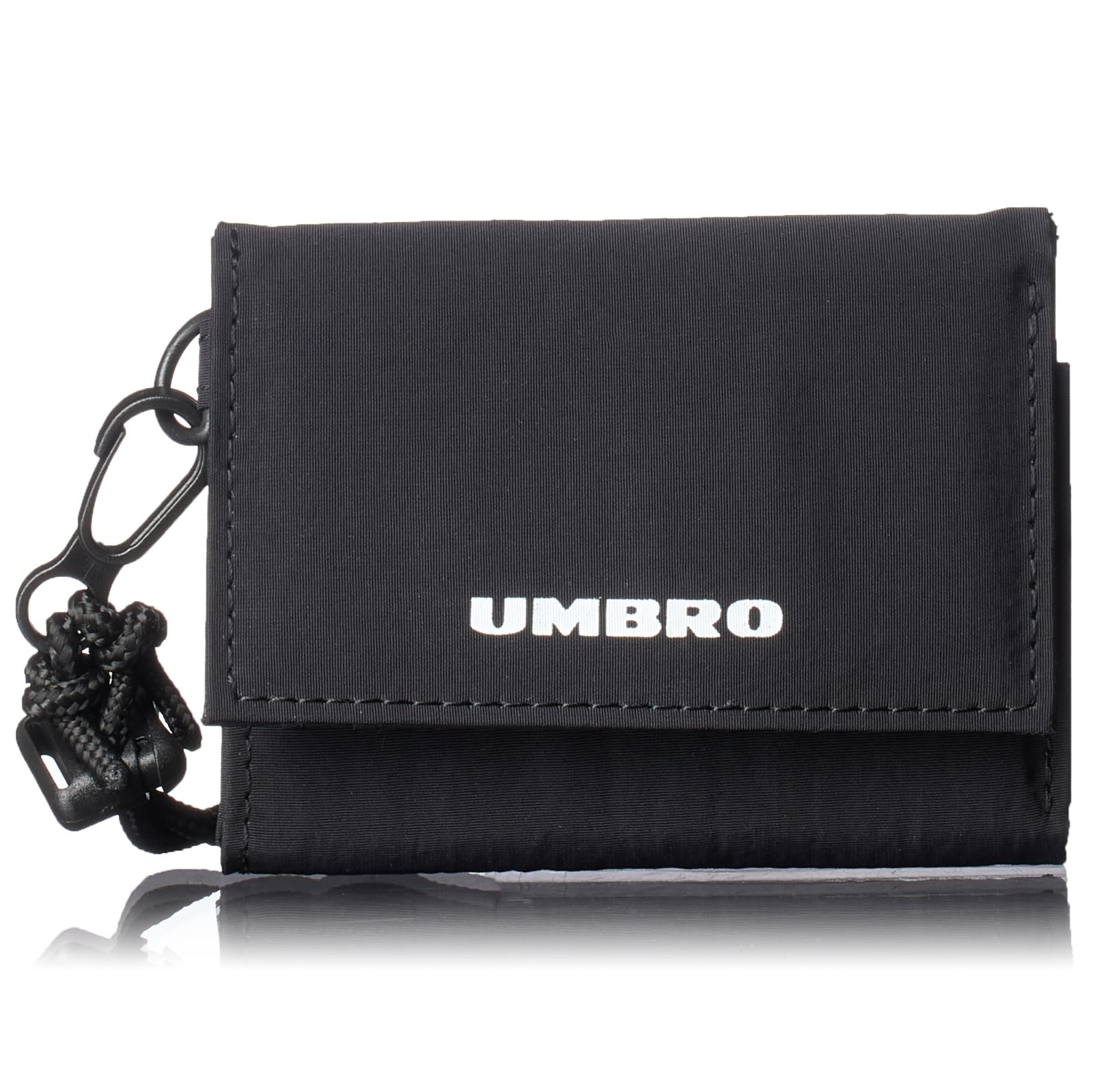 [アンブロ] 三つ折り財布 メンズ レディース ネックストラップ付き 軽量ナイロン コンパクトウォレット ミニ財布 小銭入れ付き Black