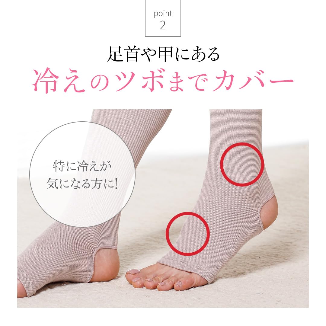 * BSファインの足首付きレッグウォーマーは、冷えのツボをしっかりカバー。足首・足先が冷えてつらい方の足先~甲までしっかりサポートしじんわり温か。心地よい温かさで包みます。さらに驚異の伸縮性でフィットしても締め付けない。その一方で体温を生地が蓄熱して温めるから季節を問わず汗をかいたり蒸れたりせず安心です。