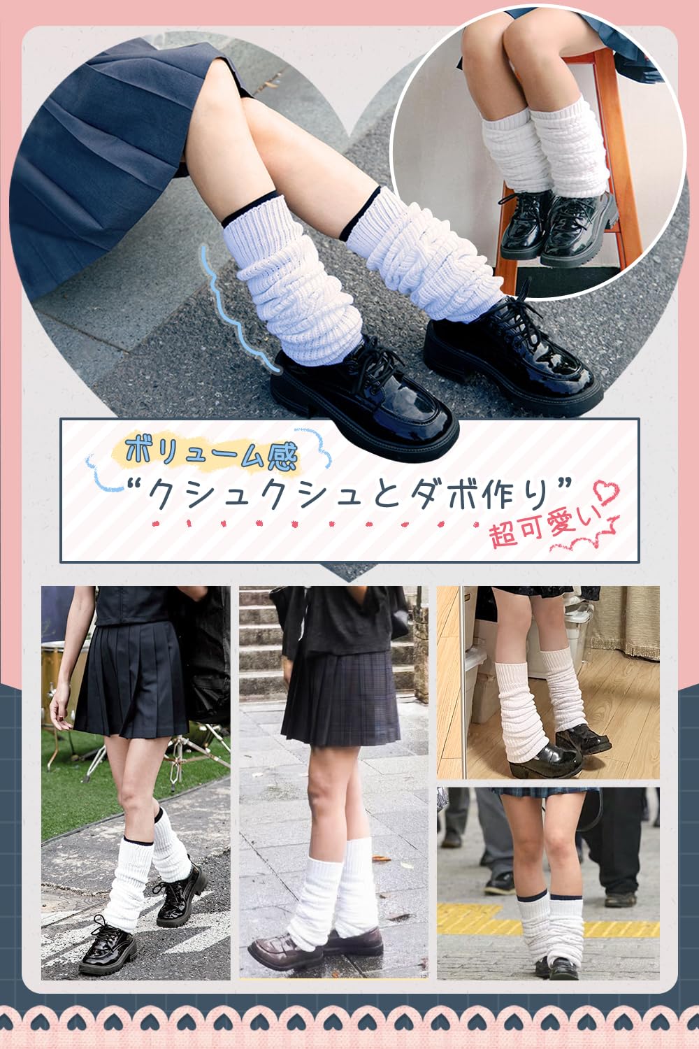* 【ファッション感十分 ルーズソックス】くしゅくしゅすねに収まって、足全体が長く見え、美しいレッグラインと更に可愛い雰囲気を持ち来るのはこのルーズソックスのポイントになります。スニーカーやマーティンブーツなさまざまな靴と簡単に合わせることができ、普通のミニスカート、制服は勿論、コスプレ、文化祭、パーティー等どんなシーンでも間違いなく大活躍!青春力あふれるコーディネートに最適なハイソックスです。