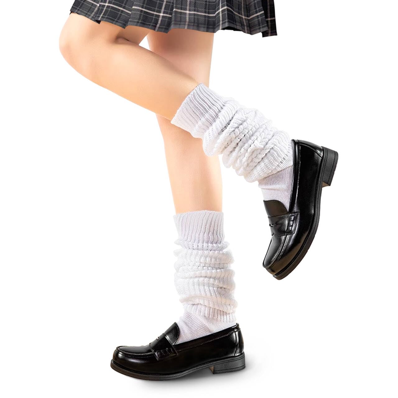 [Trnvco] ルーズソックス 白 80cm 120cm スクールソックス 制服 学生服 レッグウォーマー ニット 防寒 靴下 ハイソックス レディース ソックス 中学生 高校生 女子 伸縮性 冷え対策 通学 室内 JK 仮装 無地