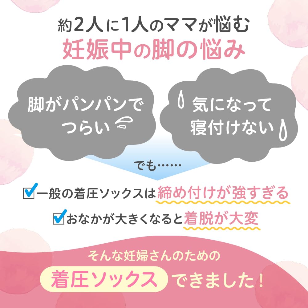 * 産前~産後まで長く使える着圧ソックス。