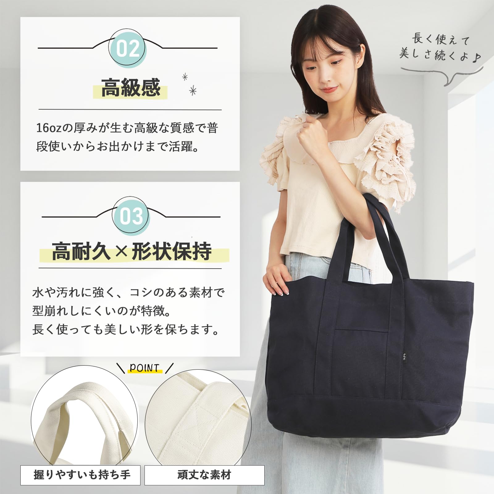 [tóti] 【もう容量に悩まない】30L 大容量 トートバッグ 大きめ キャンバス 厚手 軽量 綿100% 肩掛け メンズ レディース 買い物 旅行 アウトドア 通勤 通学 保育園 サブバッグ エコバッグ【4色】 (Pure Black(ピュアブラック))