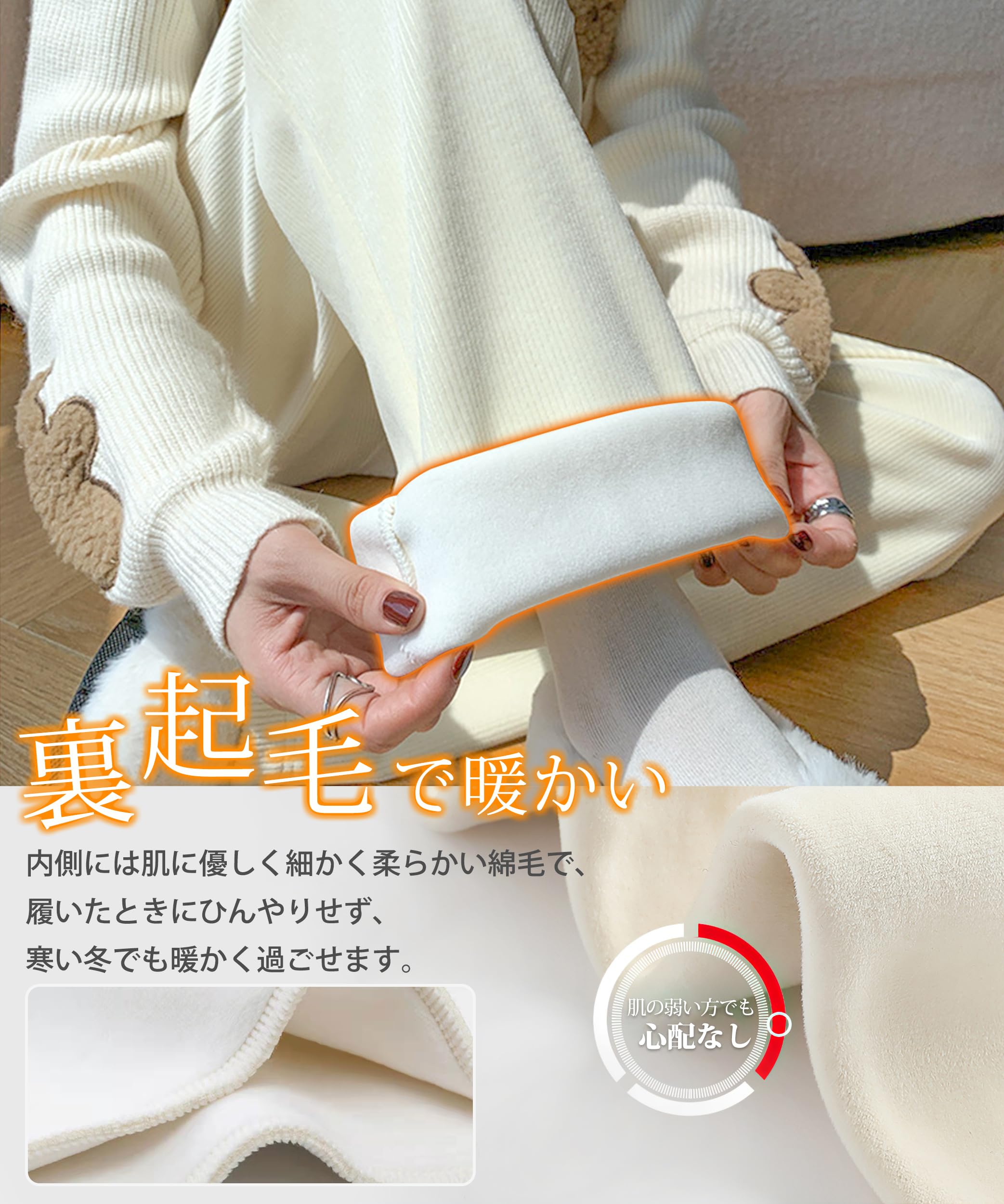 * 【裏起毛で暖かい・柔らかな履き心地】この裏起毛パンツは、寒い季節にぴったりなアイテムです。外側にはコーデュロイ素材を使用し、内側はふんわりとした裏起毛生地で仕立てられています。この組み合わせにより、寒い日でも暖かさを保ちながら、柔らかな履き心地を実現していたレディース ワイドパンツます。肌に優しい触感で、長時間の着用でも快適さを保てるのが魅力です。
