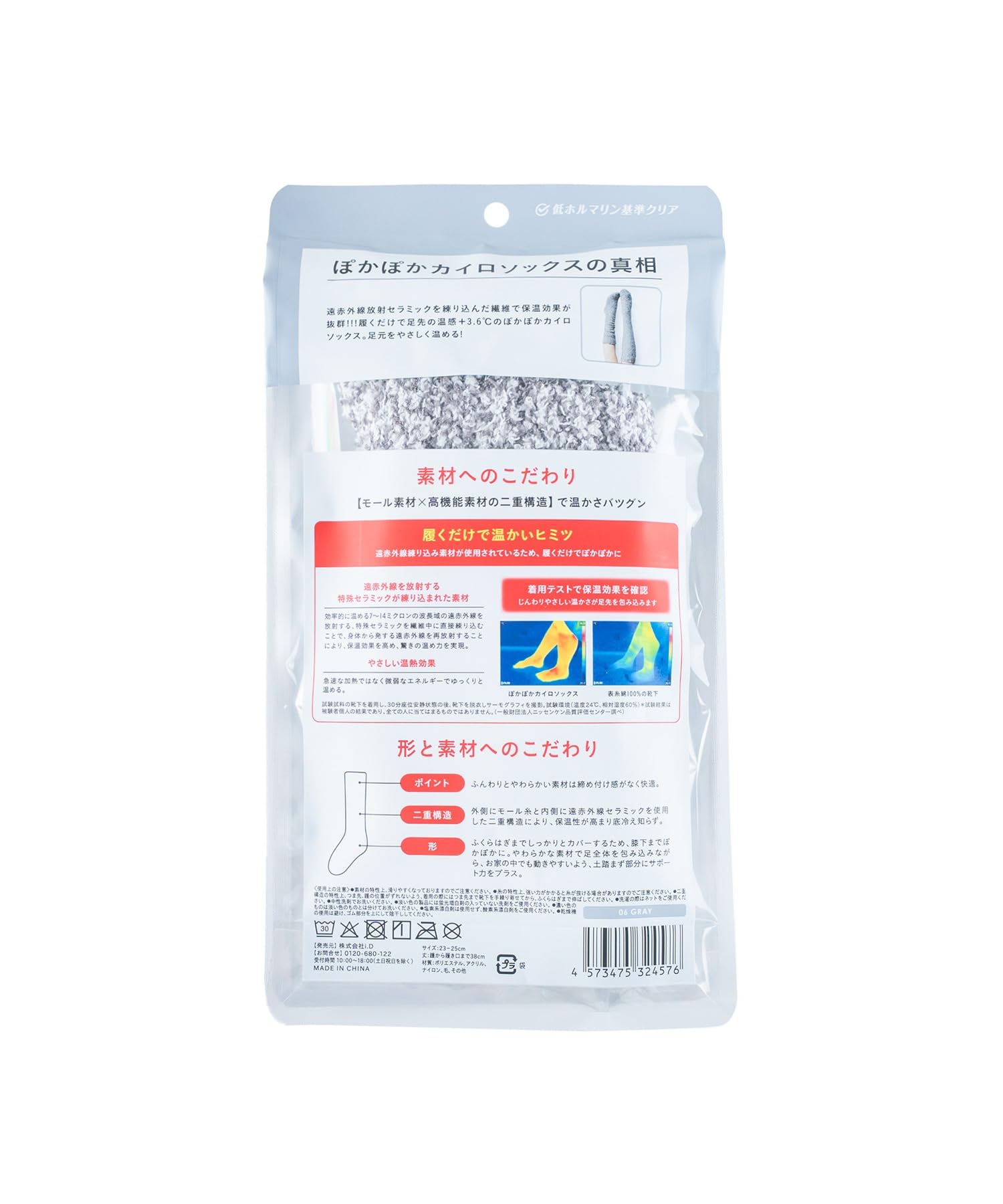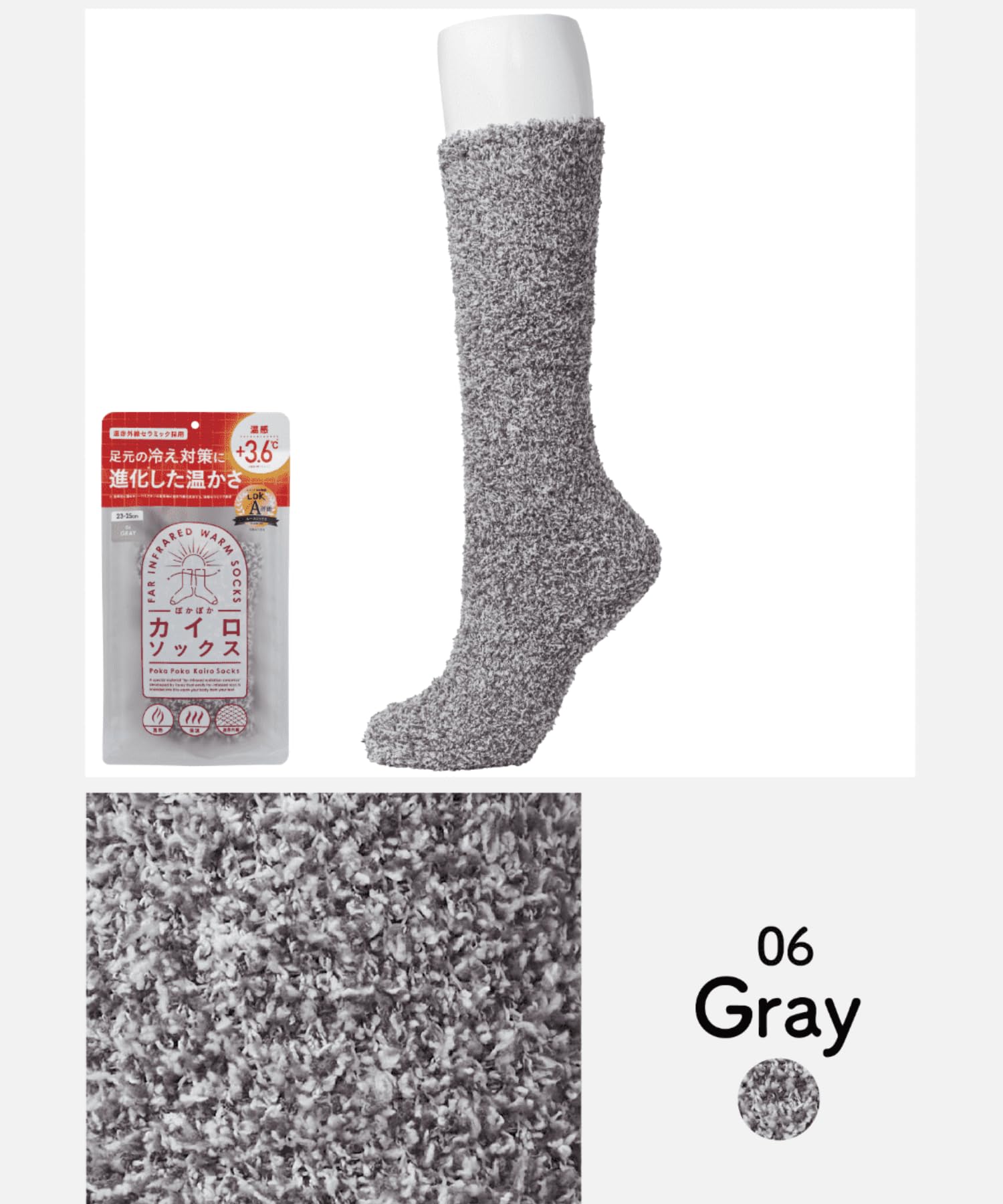 [カイロソックス] ぽかぽか (グレー) ルームソックス 靴下 あったか もこもこ 冷え対策 防寒 あったかグッズ ギフト プレゼント 秋 冬 レディース 23.0-25.0 cm