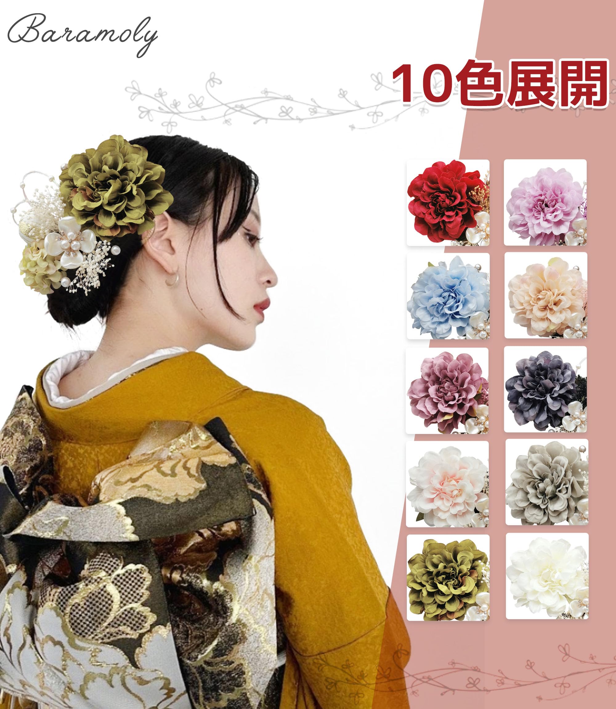 * 【豊富なカラー】ピンク、ブルー、パープル、レッド、グリーン、グレー、クリームなど、全10色を取り揃えているので、気に入る色がきっと見つかります。自分のスタイルに合った色を選んで、髪飾りを楽しんでください。