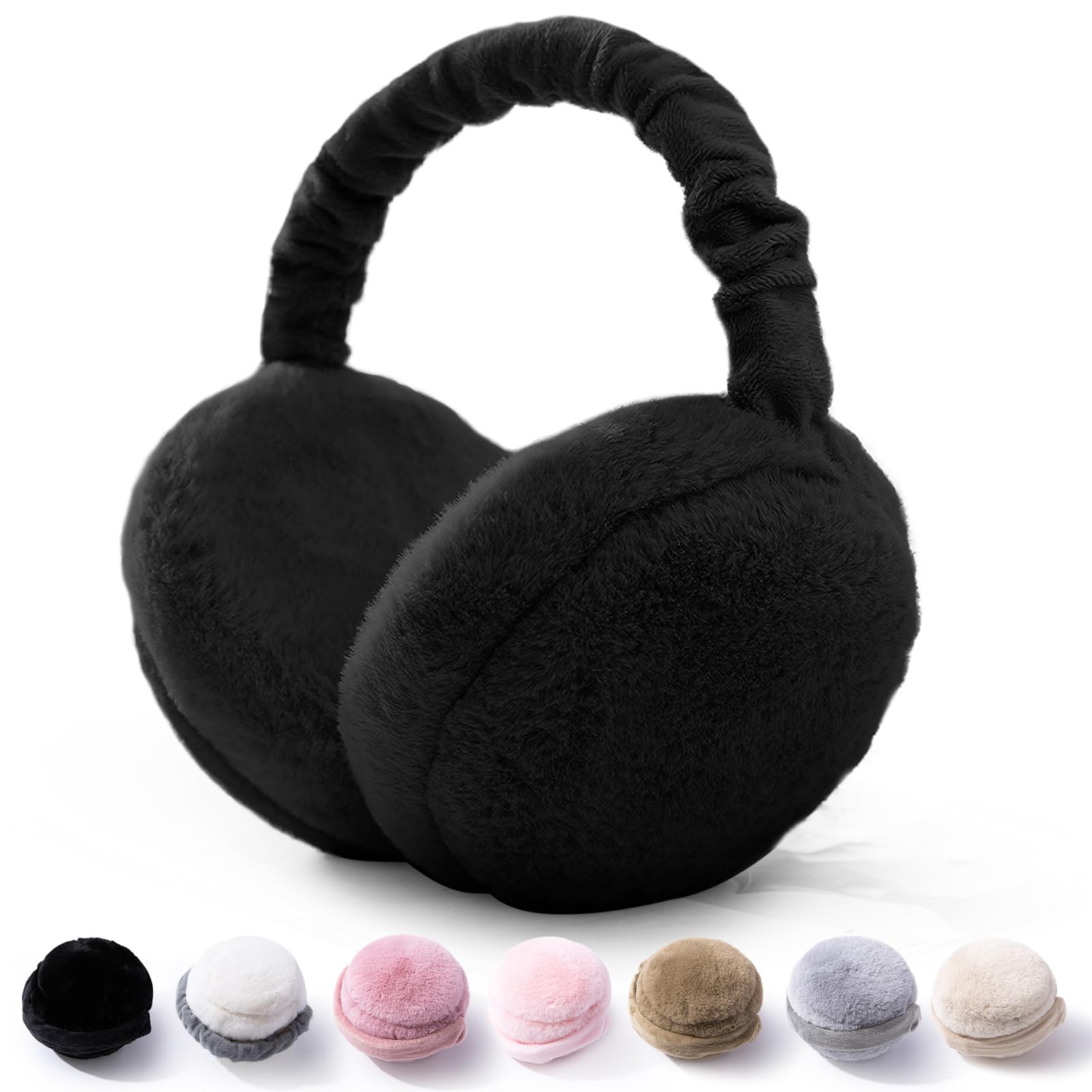 [SIVAN] イヤーマフ レディース 防寒 イヤーウォーマー 【蓄熱効果アップ-10度防寒・長さ調整可・耳痛くない】 暖かい 裏起毛 ズレにくい 可愛い ふわふわ 耳あて 携帯便利 軽量 耳カバー 通勤通学 お出かけ アウトドア (ブラック)