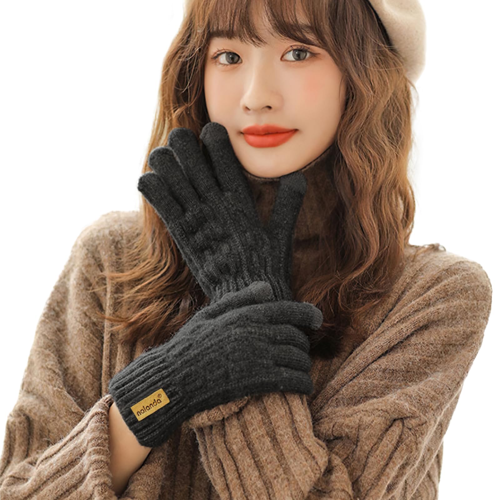 * 【寒さを感じない魔法の手袋 】:保温ニット手袋をすると、瞬時に温度が5℃上がり、とても暖かい!裏面には柔らかい裏起毛、熱を閉じ込めやすく、肌に優しく快適な着心地を実現している防寒手袋です。ふわふわの裏起毛が指先まであり、手全体から指先までしっかり温めてくれます。防寒手袋、強化された袖口、伸縮性よく、締め付けません。冷たい風の侵入を防止する同時に、動きで簡単に外れません、 ふわふわで手に着けた瞬間暖かく実感できます。 快適な使用心地で、寒い冬に大切のお手を守ります。防寒手袋としての抜群な保温性はもちろん、汗をかいても蒸れにくい吸湿性や高い耐久性に優れています。寒い冬に欠かせない暖かい手袋!