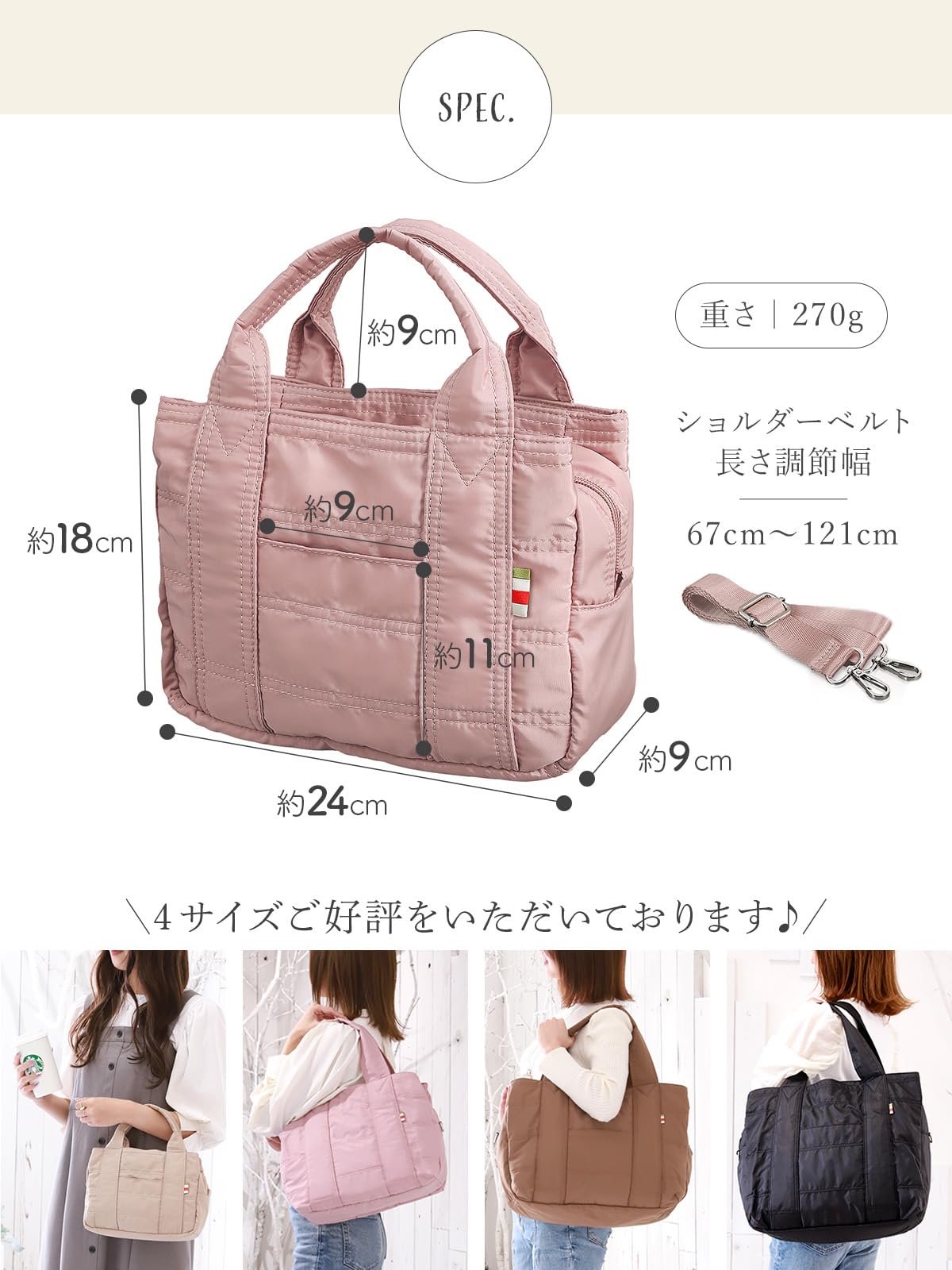 * 【軽量&高密度ナイロン素材で上質な印象】 ブランドバッグにも採用される、目の詰まった高密度ナイロンを使用。約270gの軽量仕様でありながら、見た目はしっかりとした高級感があり、カジュアルにもきれいめにもなじみます。サイズは幅24cm×高さ18cm×マチ9cmで、必要なものが無理なく収まる絶妙なバランスです。