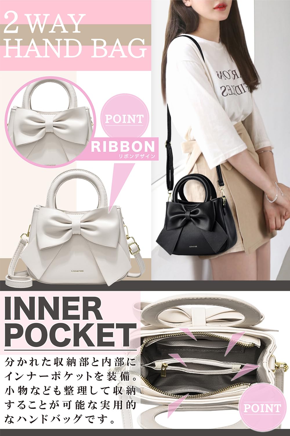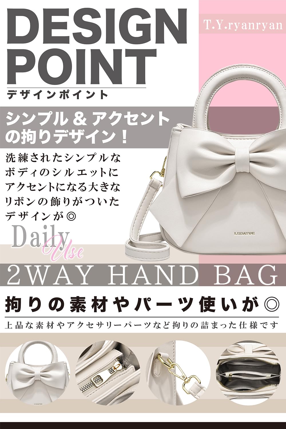 [T.Y.ryanryan] ショルダーバッグ レディース 斜めがけ ハンドバッグ 肩掛け リボン ミニサイズ ホワイト