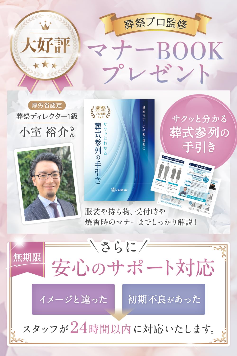 * 【葬祭プロ監修のマナーブック付属】 厚生労働省認定 葬祭ディレクター1級の小室裕介氏が監修した 葬式 マナーBookを付属しております。